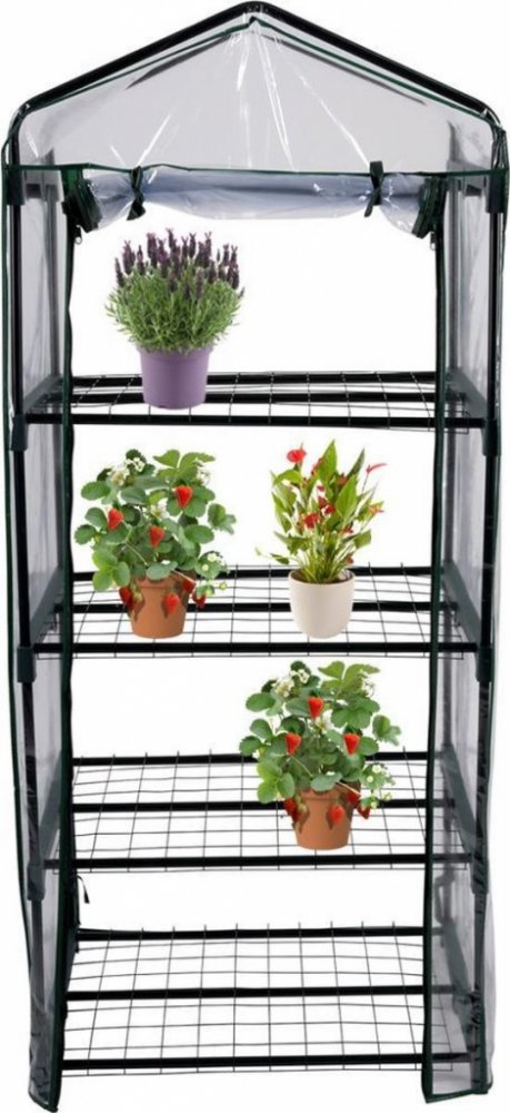 Praktický skleník s lehkým kovovým rámem, lakovaným zeleně a odolným plastem se snadno čistí a lze jej snadno přemístit z bodu A do bodu B.