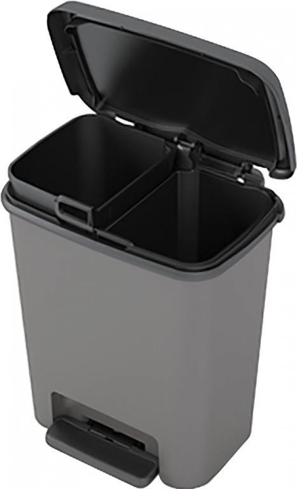 Praktický koš na třídění odpadu se dvěmi vnitřními nádobami 38 x 28 x 43v cm 20 + 20 l (sáčky) nádobky v koši jsou 12 + 12 litrů Plastový odpadkový koš COMPATTA RECYCLING 12+12 Plastový koš COMPATTA RECYCLING je druhou variantou koše COMPATTA. Tento koš však neobsahuje obruč na uchycení odpadkového sáčku, ale dvě samostatné nádoby. Tyto nádoby lze lehce vyjmout, tedy se snadno vymývají. Koš je vybaven pedálovým otevíráním. Výhody koše COMPATTA RECYCLING velká kapacita koše 12 + 12 litrů nádoby 2 samostatné nádoby pedálové otevírání příjemné a nekřiklavé barvy podlouhlý tvar (koš tolik nevystupuje do prostoru od zdi) vhodné pro sáčky 20 + 20 litrů