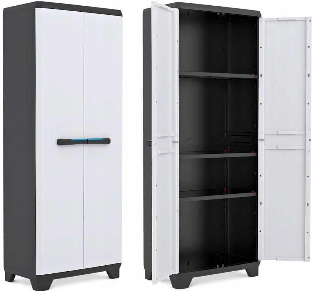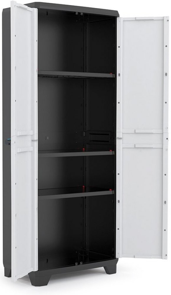 Prostorná skříň LINEAR TALL od značky KETER je ideální pomocník do garáže, na chatu, na terasu nebo do sklepa. Skříň je vybavena pevnými panty a je možné ji uzamknout. Velkou předností skříně jsou tři nastavitelné police s nosností 15 kg.