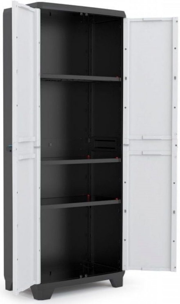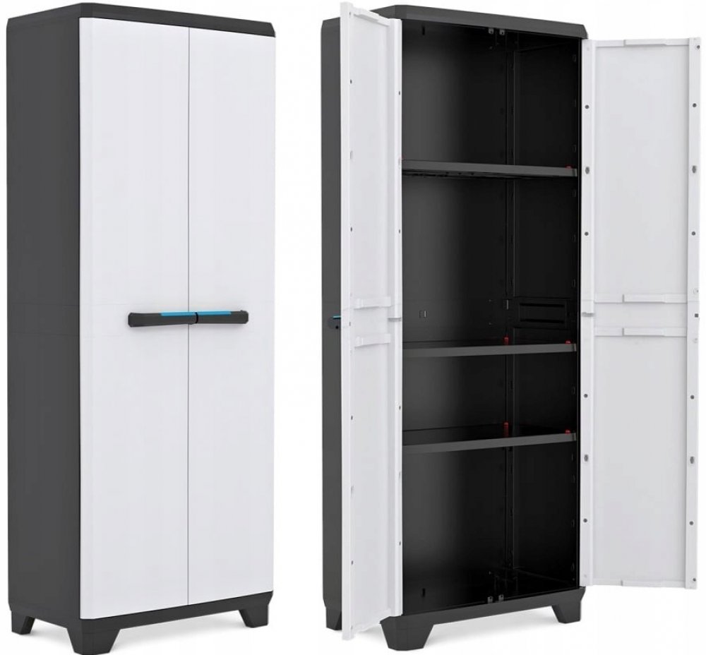 Kvalitní skříň řady Linear se vyznačuje moderním designem a řadou praktičností. Výškově stavitelné nožičky. Je vhodná pro různá umístění. Inovativní a stavitelné police nabízí komfort při ukládání věcí a tím zajistí flexibilnější využití. Velká madla s modrými doplňky.