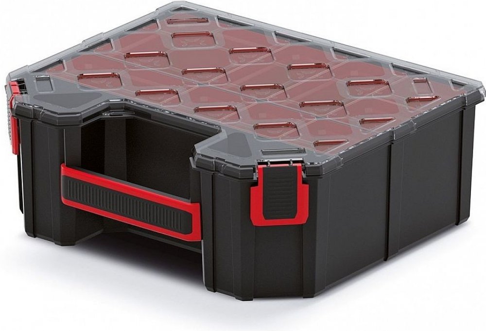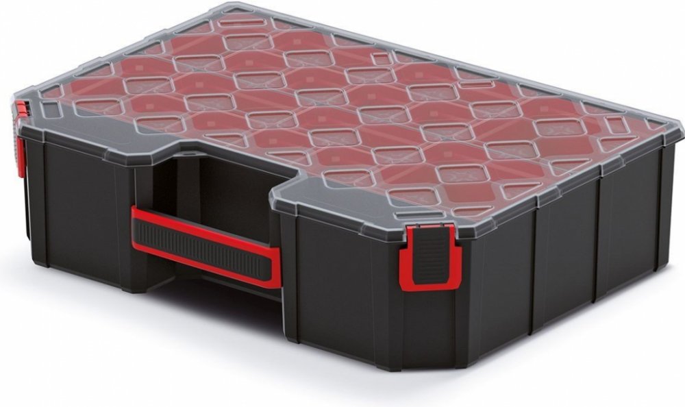 Organizéry představují praktický způsob, jak si udržet pořádek v drobnějším náčiní a součástkách a zároveň je mít vždy po ruce. Tento model je vybaven krabičkami, pomocí kterých si úložný prostor přizpůsobíte přesně na míru. Průhledné víko z polypropylenu vám usnadní hledání toho správného dílu i bez nutnosti otevření.