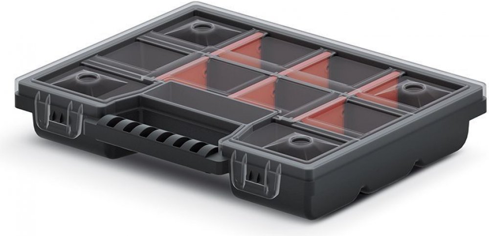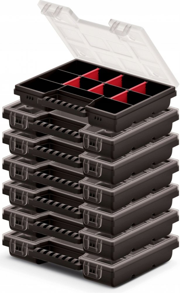 Univerzální organizéry ze série Nor s nastavitelnými přihrádkami – pohodlné řešení, díky kterému lze přizpůsobit velikost a počet přihrádek podle svých potřeb. Průhledné víko umožňuje bez otevírání zkontrolovat, co je uvnitř, a díky silné rukojeti lze organizér snadno přemístit na jiné místo.