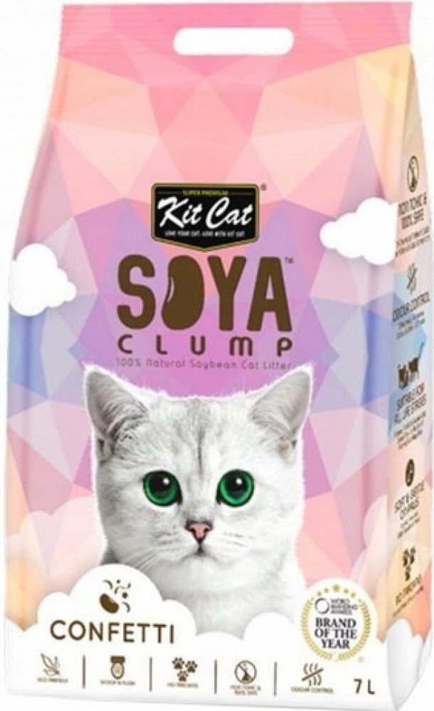 Kit Cat SoyaClump Confetti je 100% přírodní, ekologický, biologicky rozložitelný stelivo štěrk pro kočky.