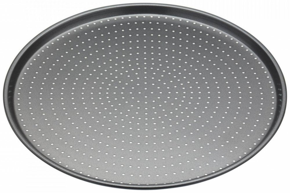 Kitchen Craft Kulatý plech na pečení Pizza Tray ⌀ 32 cm, šedá barva, kov. Není nad křupavou pizzu! Díky tomuto kulatému plechu se vám každá povede! Forma má malé dírky na spodní straně, takže teplý vzduch může proudit i na spodní stranu těsta a díky tomu, bude vždy přesně taková, jak ji máte nejraději.