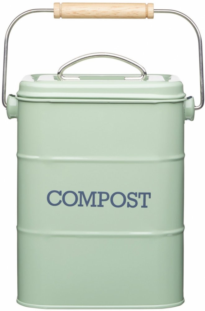 Vintage zelený plechový kompostér obsahuje integrovaný uhlíkový absorpční filtr a náhradní filtr. Objem kompostéru 3l.