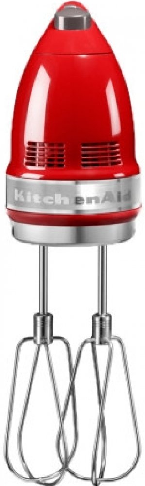 Ruční šlehač od výrobce KitchenAid má 9 různých nastavení rychlosti. Tento šlehač má tichý chod, výkonný motor, a tak připraví jak těsto na sušenky, tak těsto na dorty nebo chléb, připravíte s ním smoothie, omáčky, krémy a ušleháte bílky nebo šlehačku. Funkce ,,měkký start" zajišťuje pomalé zvyšování otáček při spouštění šlehače, a tak se zabraňuje nechtěnému vystříknutí surovin z nádoby. Ruční mixér je lehký, a proto umožňuje i šlehání jen jednou rukou. Balení obsahuje: turbo šlehače, mixovací tyč, hnětací háky, šlehací metlu se 16 dráty a obal na uskladnění nástavců. Nástavce jsou vhodné do myčky na nádobí.
