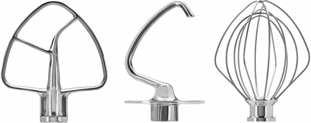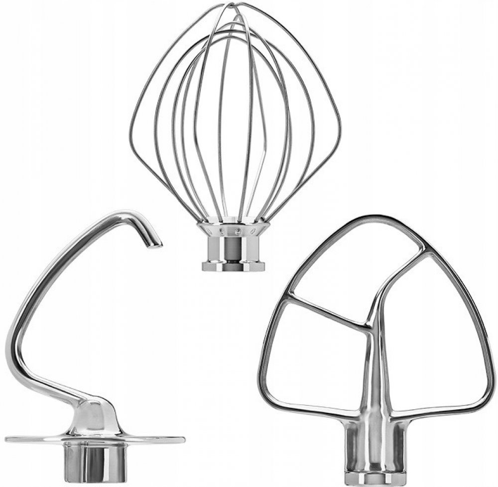 KitchenAid 5KSM5TH3PSS je praktická a odolná nerezová sada tří základních nástavců pro kuchyňské roboty KitchenAid s naklápěcí hlavou. Sada obsahuje plochý šlehač, hnětací hák a šlehací metlu, které jsou vyrobené z kvalitní nerezové oceli. Díky tomu jsou ideální pro intenzivní používání a lze je snadno mýt v myčce nádobí.