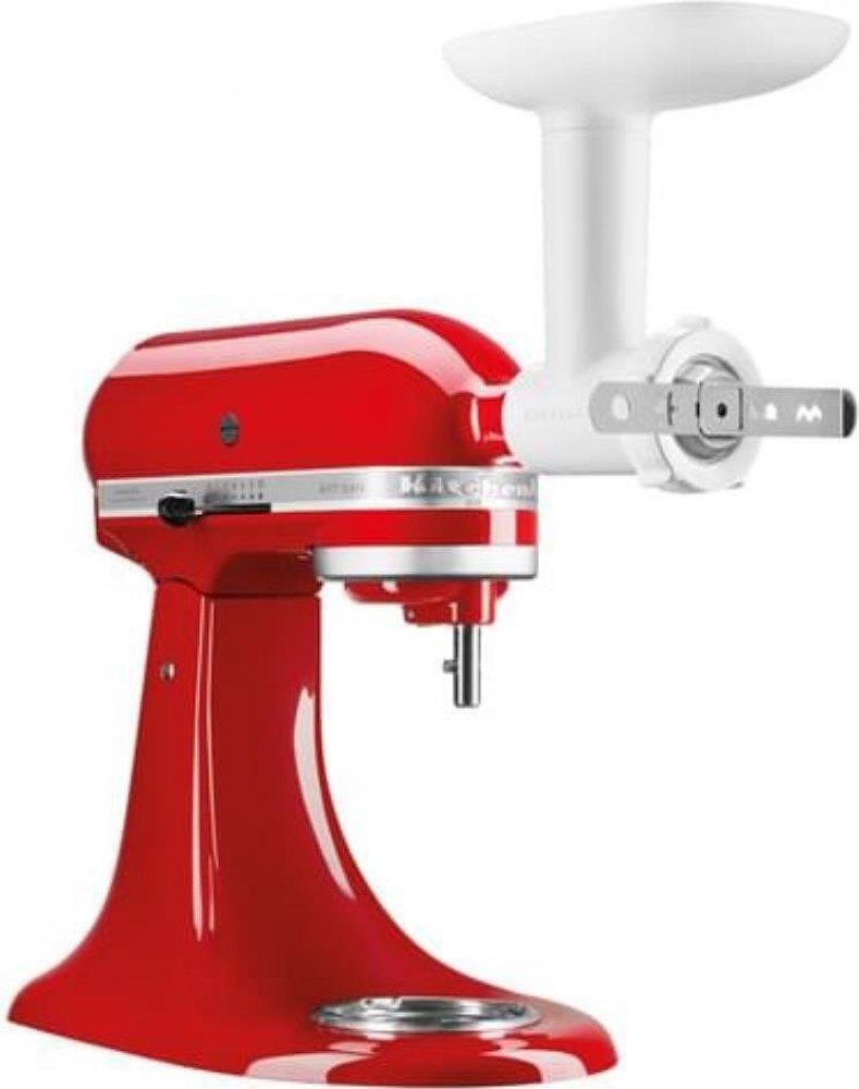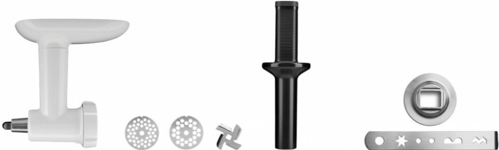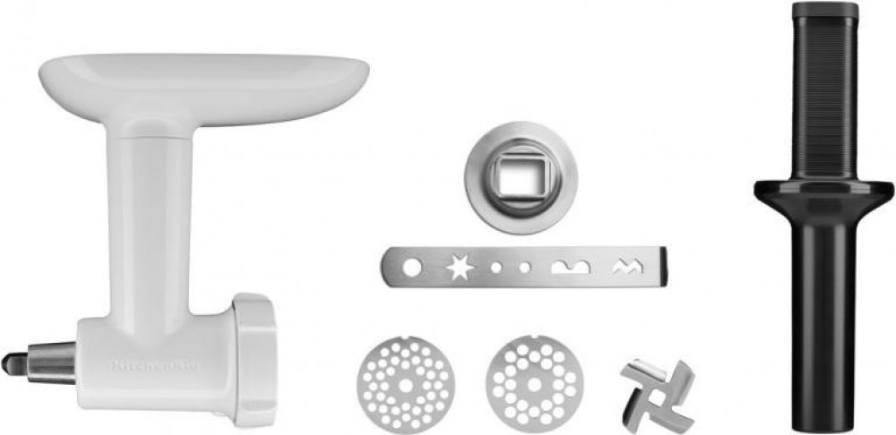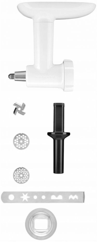 KitchenAid Mlýnek na maso s tvořítkem na cukroví 5KSMFGCAVytvořte si z ingrediencí zdravé a čerstvé pokrmy, které si připravíte sami a navíc máte jistotu, že vše je čerstvé a ideálně namleté dle vašich představ.Mlýnek na maso s nástavci snadno a rychle zpracuje suroviny, pomůže s přípravou burgerů, paštik, salsy, pomele tvrdé sýry, pečivo a dětem připraví zdravou přesnídávku. Se snadným zatlačení jakéhokoli druhu potraviny směrem k noži pomůže pěchovač.Součástí mlýnku je i tvořítko na cukroví, skvělý doplněk a pomocník při výrobě lahodných domácích cukrovinek 5 různých tvarů. Mlýnek je kompatibilní se všemi modely kuchyňských robotů KitchenAid. Záruka Na tento model se vztahuje 2 roky záruky.Nůž z nerezové oceli Pro zpracování měkkých i tvrdých surovin. Mýt pouze ručně.Jemný (4,5mm)nástavec na mletí Pomocí jemného nástavce na mletí můžete rozemlít vařené maso na pomazánky, paštiky, tvrdé sýry (např. parmezán) nebo strouhanku. Mýt pouze ručně.Hrubý (6mm)nástavec na mletí Hrubý nástavec k mletí syrového masa na burgery či zeleniny na salsu a omáčky. Mýt pouze ručně.Přídavný mlýnek na maso Vylepšená konstrukce přídavného mlýnku na potraviny pro kvalitní mletí čehokoli od syrového masa po zeleninu.Pěchovač Pomocí pěchovače můžete snadno zatlačit jakýkoli druh surovin do plnicí trubice směrem k noži a nástavcům na mletí. Lze mýt v myčce na nádobí.Odnímatelný tácek Snadné čištění. Lze mýt v myčce na nádobí.Tvořítko na cukroví 5KSMCCA pro 5 různých tvarů Snadná příprava domácího cukroví. Na cukroví a sušenky různého složení a velikostí. Nedoporučuje se mýt v myčce na nádobí.