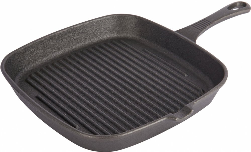 Grilovací pánev je vyrobena z odolné litiny, což zaručuje výbornou tepelnou vodivost a trvanlivost. S rozměry 23 cm je dostatečně prostorná pro grilování různých pokrmů, od steaku až po zeleninu.