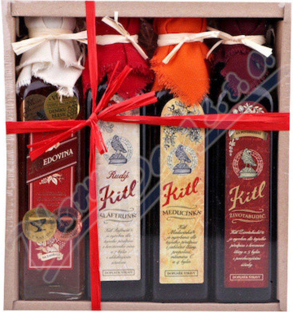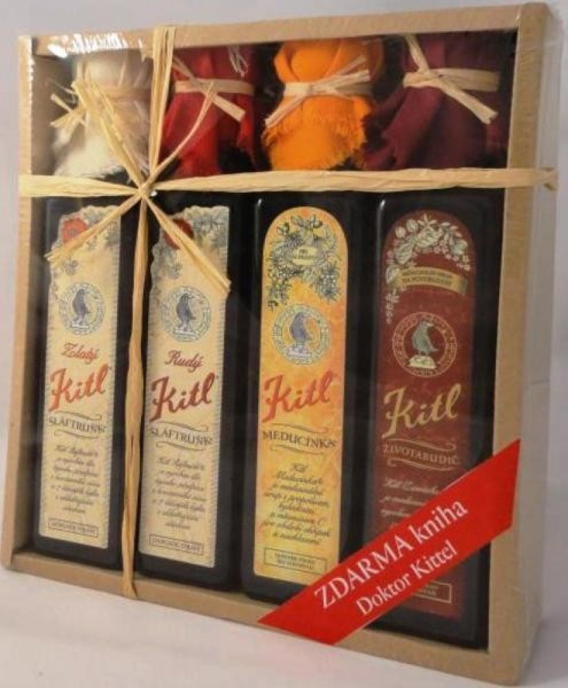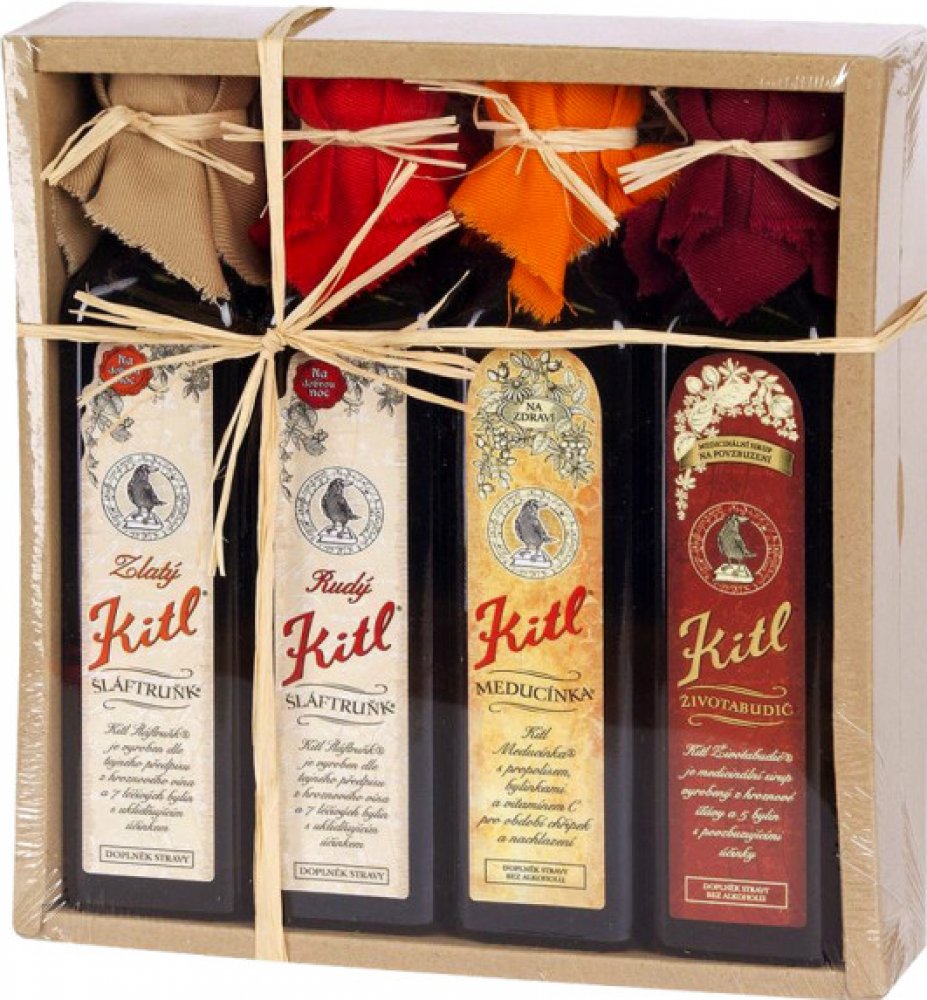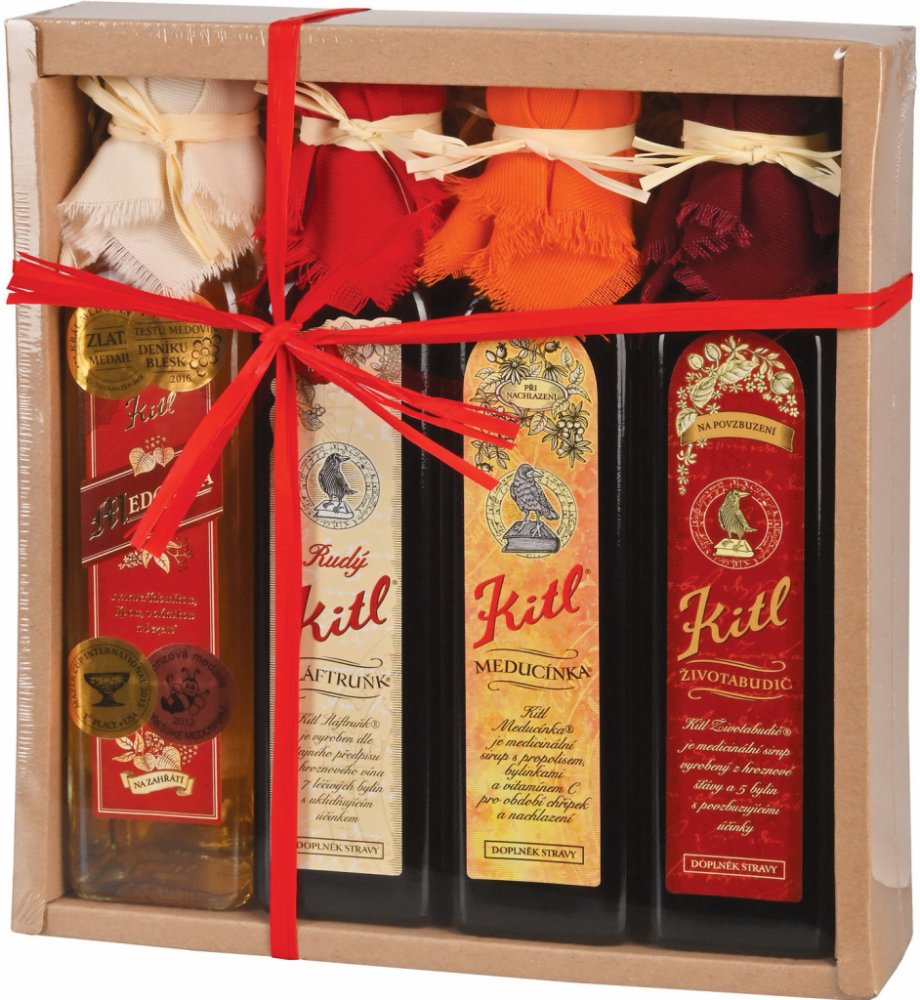 Dárkové balení Kittelova Apatyka 4x250 - Šláftruňk Rudý a Zlatý & Meducínka & Životabudič obsahuje: