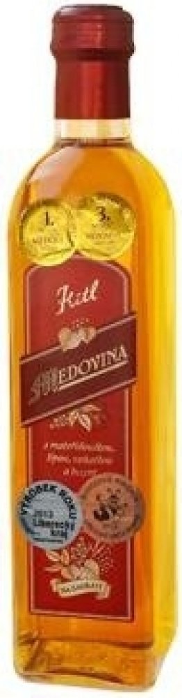 Medovina je slazena pouze a jen hroznovou šťávou, neobsahuje žádný cukr řepný nebo umělá sladidla. Stejně tak není dobarvovaná, zachovává si přirozenou barvu.