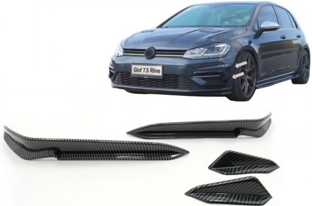 KITT Front Bumper Side Fins Flaps suitable for VW Golf 7.5 5G R Hatchback (2017-2020) Carbon Look