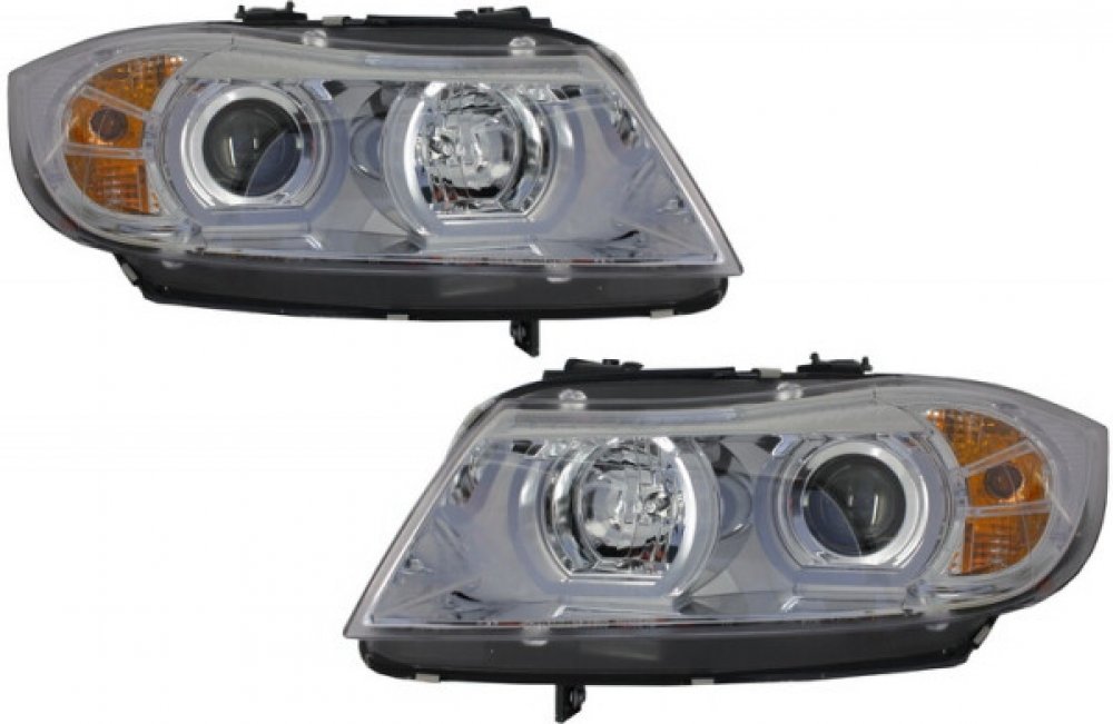 IntroXenon Projector headlights with 3D LED dual halo rims. These headlights are meant to improve the design of your BMW 3 Series E90 E91 and increase road securitySuitable forBMW 3 Series E90 E91 Sedan Touring (03.2005-08.2008) equipped with factory xenon (OEM)Not suitable forBMW 3 Series E90 E91 LCI (2008-up)