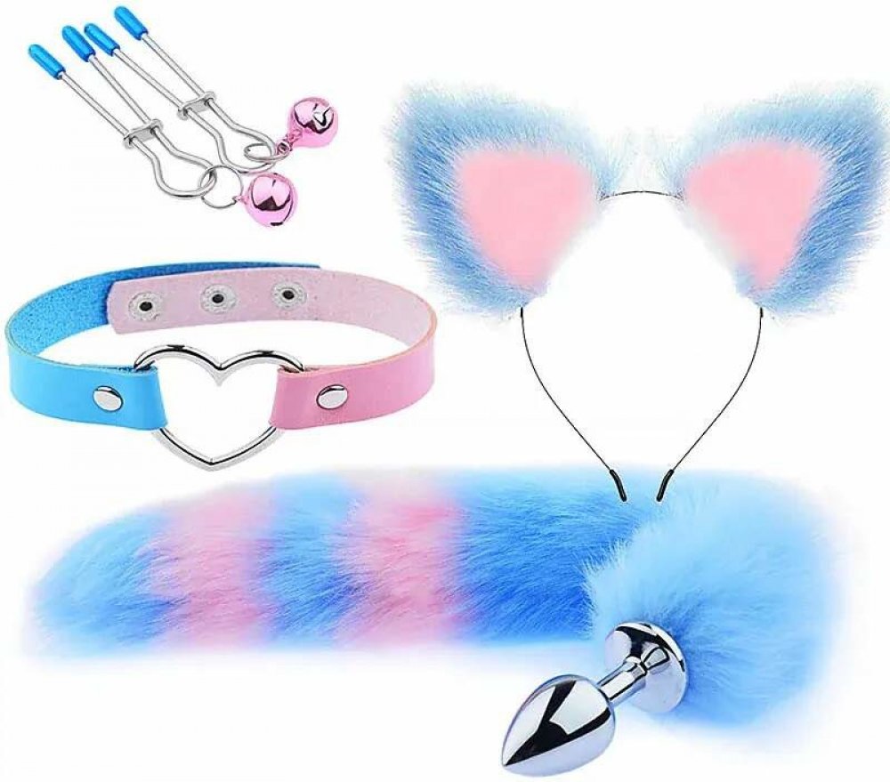 Sada barevných kočičích doplňků je víc než jen sada produktů, je to klíč k hravosti a vzrušení přesně navržený tak, aby vám poskytl nezapomenutelné okamžiky! Dejte prostor svým fantaziím a touhám a nechte se unést do světa, kde je každý moment plný překvapení a slasti. Kromě chlupatých oušek a ocásku v sadě najdete také kočičí obojek a svorky na bradavky s rolničkam...
