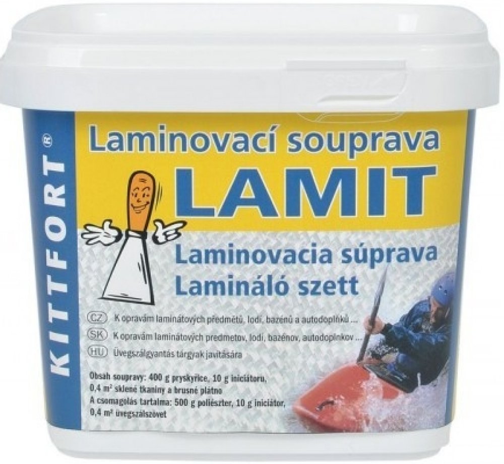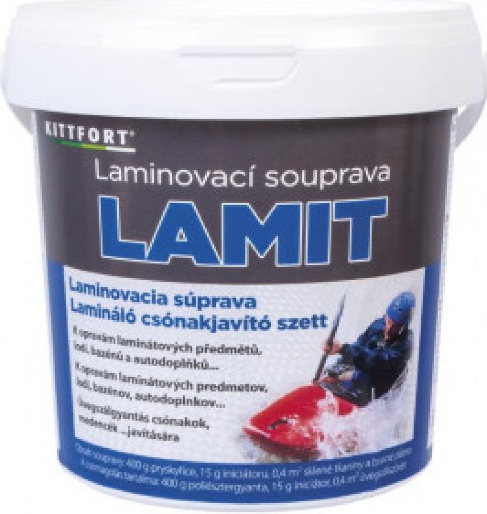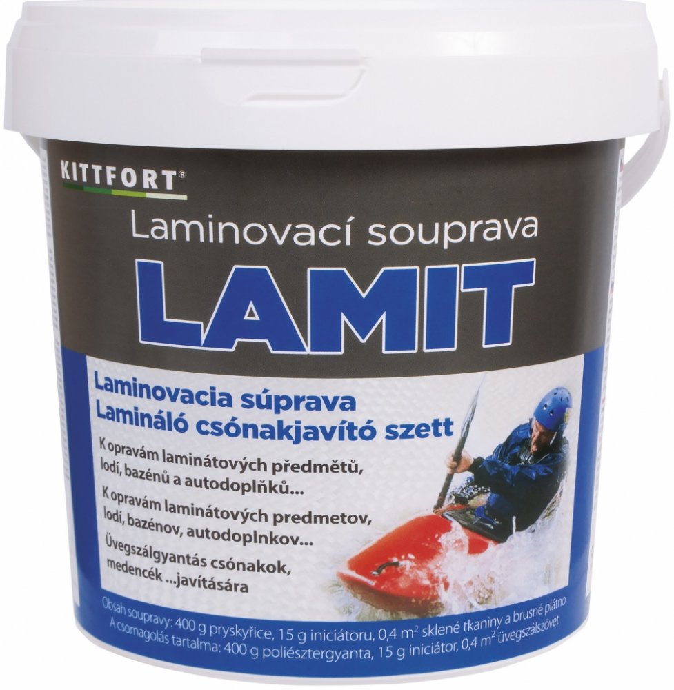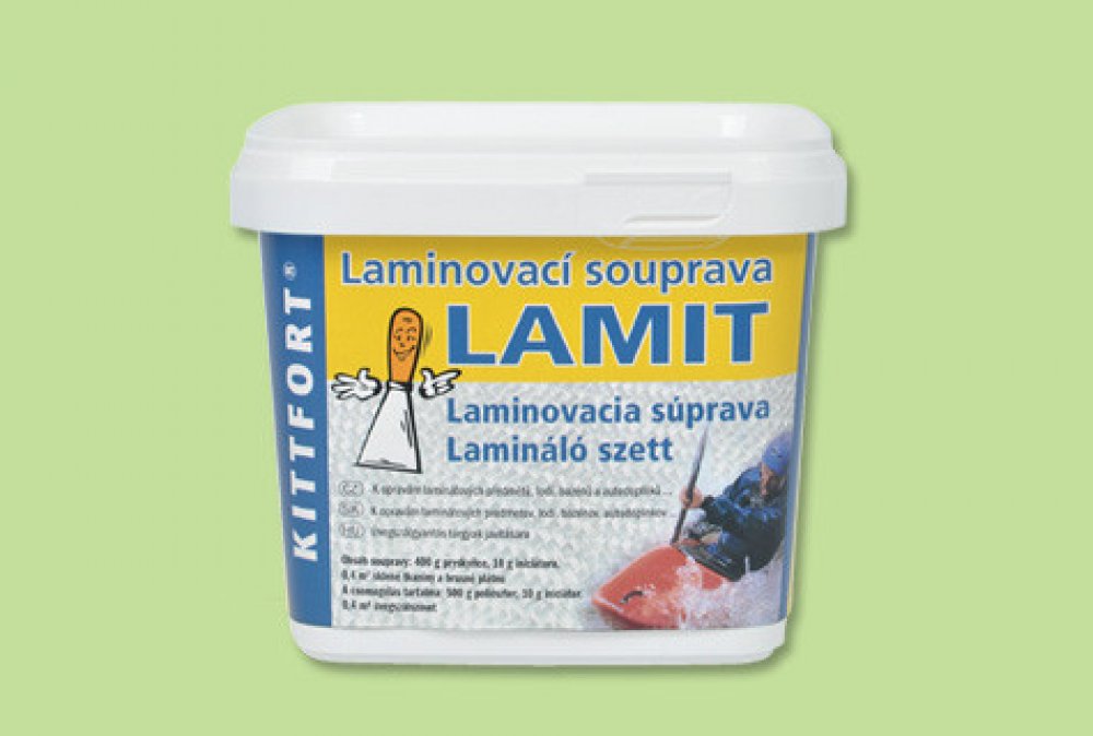 Souprava je určena k opravám laminátových předmětů např. lodí, bazénů, sportovních potřeb a autodílů. Nejdříve doporučujeme poškozené místo dokonale očistit, obrousit a odmastit. K potřebnému množství polyesteru, který dokážeme zpracovat do 15 min. při teplotě 20 °C, přidejte za stálého míchání 2 % iniciátoru. Nelaminujte zásadně při teplotách nižších než +15 °C! K vytvrzení dochází později, a tím...