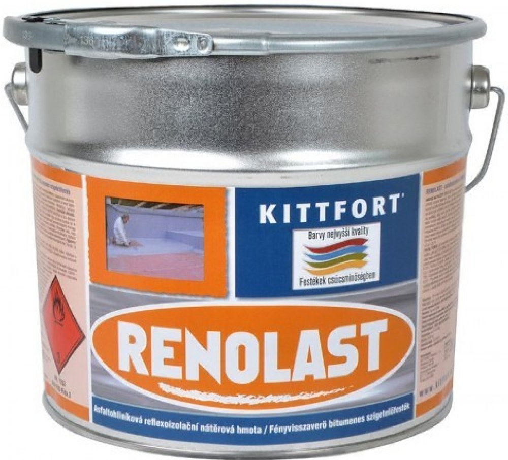 Střešní a izolační nátěr KITTFORT RENOLAST o hmotnosti 3 kg je určený pro úpravu střešních krytin z betonu, plechu, lepenky či dřeva. Kromě izolační a konzervační schopnosti nátěr odráží světelné a tepelné záření. RENOLAST disponuje vysokou vydatností až 10 m² na 1 kg. Pro optimální vlastnosti nátěru doporučujeme aplikovat ve dvou vrstvách.