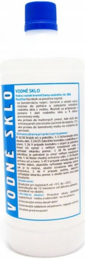 Návod k použití: konzervace vajec: 1 díl vodního skla + 9 dílů převařené vody. Na láhev o obsahu 5 l (50 kusů vajec) stačí 2,5 l roztoku. Čerstvá omytá vejce vložíme do láhve a zalijeme roztokem. Ve směsi se šamotovou maltou na opravy vyzdívky všech druhů topenišť. Příměs do maltových směsí jako ochrana proti zamrznutí (účinné do -3°C).