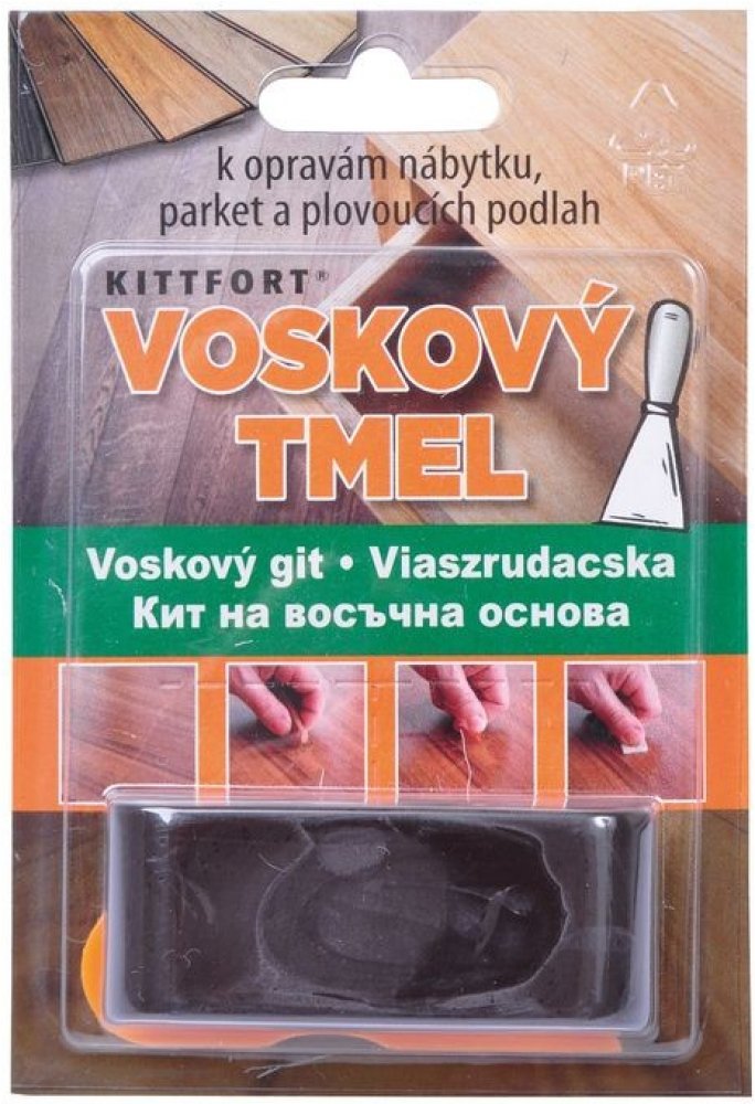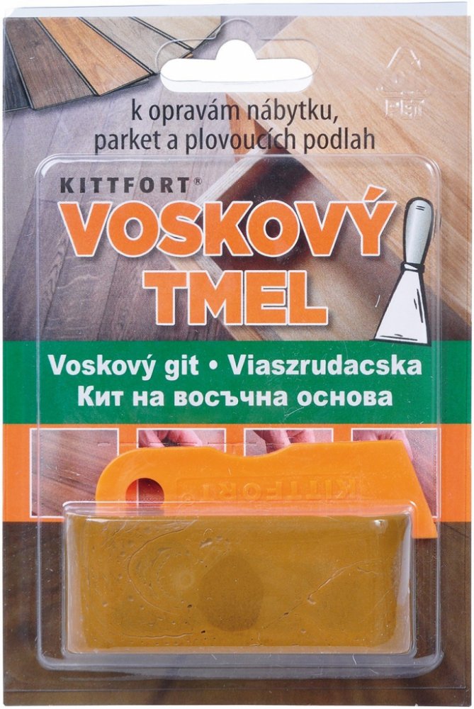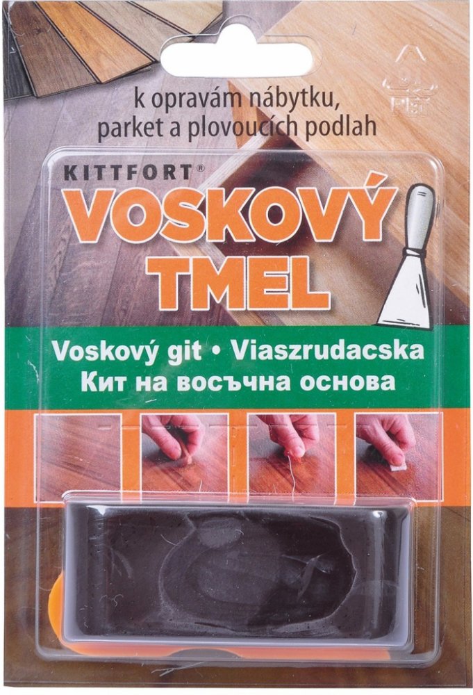 Voskový tmel slouží k vyspravení a retušování rýh a drobných škrábanců v plovoucích podlahách, parketách, mořeném dřevě a leštěném nábytku. Tmel je po aplikaci světlostálý. Následné ošetřování opravených míst běžným způsobem. Velmi rychlá a jednoduchá oprava – interiér i exteriér.