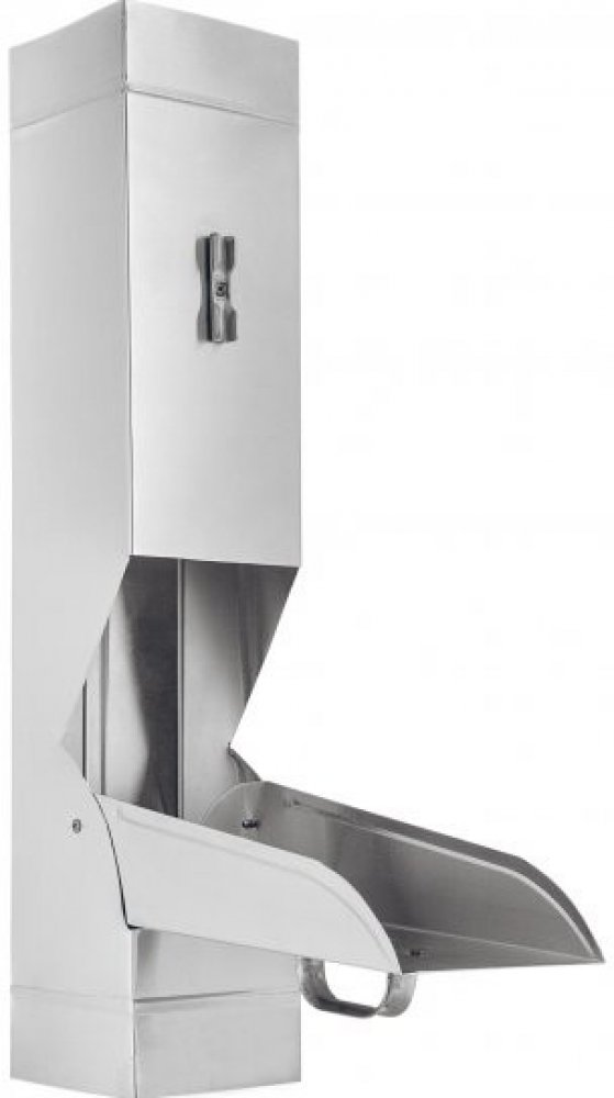 Svodová dešťová klapka hranatá od výrobce KJG je mezikus, který umožňuje manuální ovládání odvodu dešťové vody ze střechy. Instaluje se do svodové trubky a slouží k zachytávání vody do nádob v blízkosti svodu (např. zalévání zahrady). Klapku můžete snadno otevřít nebo zavřít pomocí jednoduchého mechanismu.