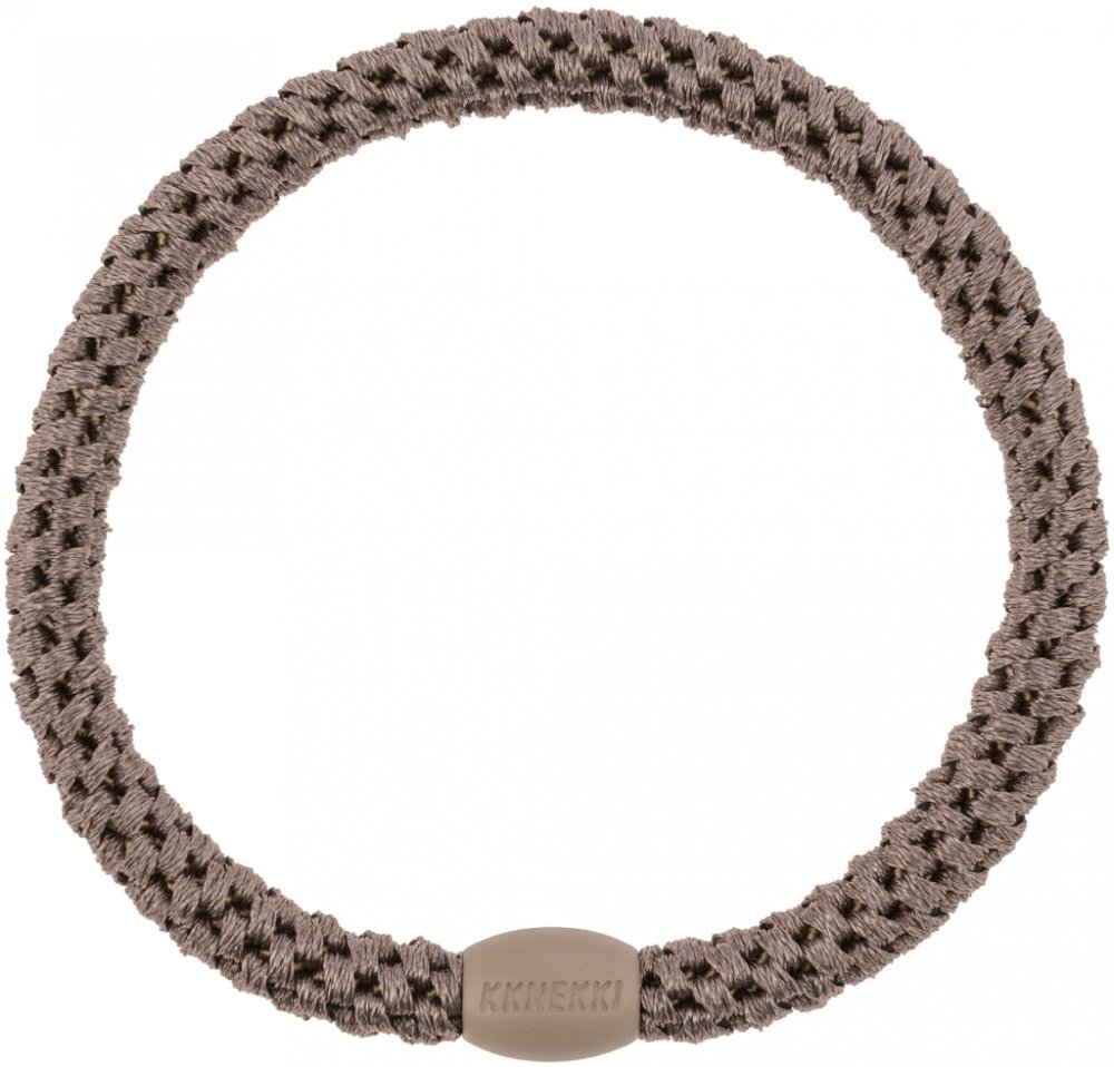 Tato gumička Kknekki je ve variantě Slim v tlumeném, tmavém neutrálním odstínu, který se nachází mezi hnědou, šedou a fialovou. průměr přibližně 5 cm Vyrobeno z polyesteru a gumy.
