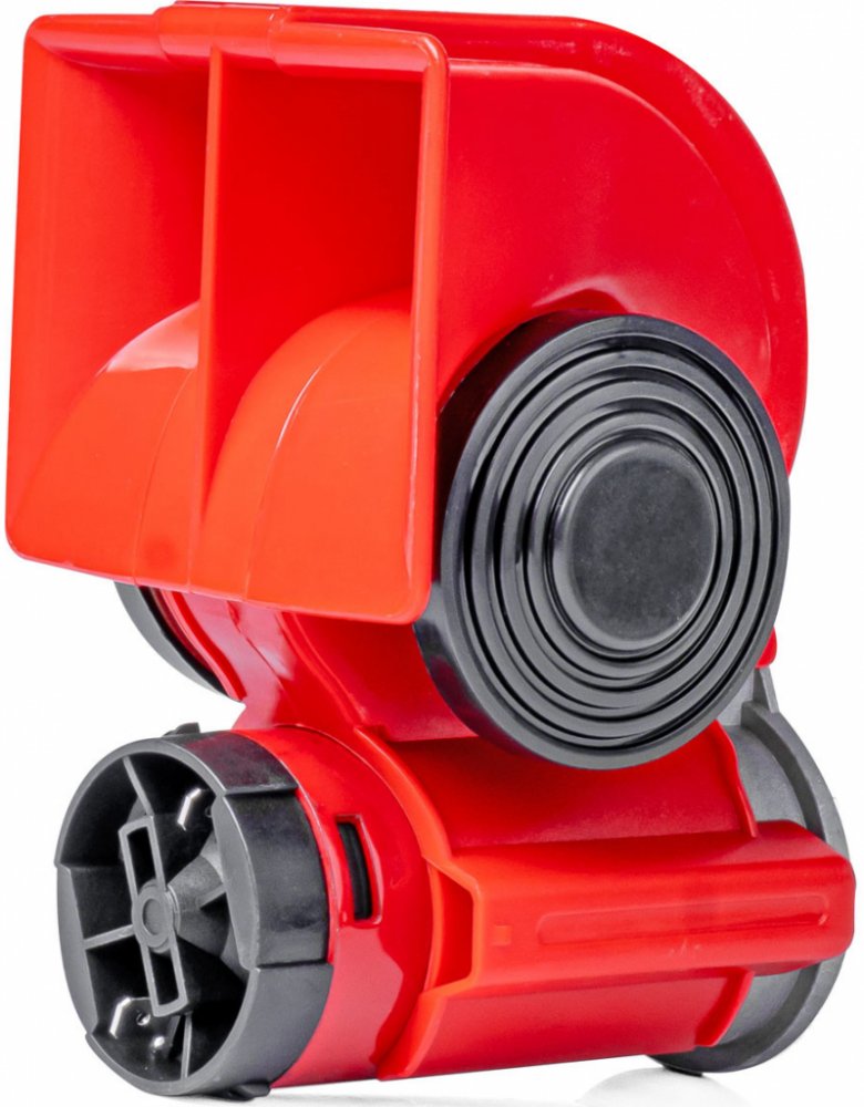 Popis produktu Profesionální, dvoutónová fanfára (klakson) s vestavěným kompresorem, velmi hlasitá - až 139 dB Sada obsahuje relé a montážní prvky. TECHNICKé PARAMETRY: typ zvuku: dvoutónový, harmonizovaný hlasitost vydávaného zvuku: 139 dB rozsah vydávaného zvuku: 530 - 680 Hz ±5% napájení: 12V životnost: 100 000 cyklů zapnutí/vypnutí Červená barva ROZMĚRY: délka: 15,4 cm šířka: 9,5 cm (měřeno „na výstupu”) výška: 11,2 cm VýHODY: Poskytuje hlasitý, rezonanční zvuk a zlepšuje bezpečnost: pevná zvuková membrána a správně navržené pouzdro vytvářejí velmi hlasitý zvuk – až 139 dB. To se rozhodně promítá do lepšího poslechu na cestě a zvyšuje bezpečnost. Dlouhá životnost a vysoká kvalita zpracování: klakson je vyroben z vysoce kvalitních materiálů, což se promítá do jeho odolnosti - až 100 000 cyklů zapnutí/vypnutí. Je odolný vůči povětrnostním vlivům, otřesům, vibracím a pod. Univerzální: lze jej namontovat do jakéhokoli vozidla s 12V elektroinstalací (osobní auto, dodávka, loď, čtyřkolka apod.), i takové, které nebylo z výroby vybaveno zvukovým signálem. Velmi jednoduchá instalace: samoinstalace pomocí jednoho šroubu.