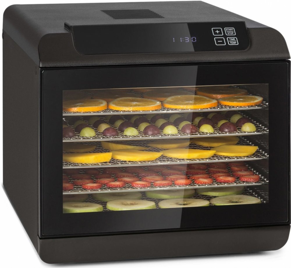 Výkonná sušička Klarstein Arizona Jerky suší ovoce, zeleninu, maso a jiné potraviny v rekordním tempu a vyrábí tak lahodné, trvanlivé pochoutky a suroviny. Ať už sušené ovoce bohaté na vitamíny, jako například jablečné a banánové lupínky, nebo zdravá zelenina jako sušená rajčata – Arizona Jerky má správnou teplotu pro každou pochoutku. S energeticky efektivním topným výkonem 500 W a rovnoměrným rozložením tepla se sušička Arizona Jerky postará o to, že v potravinách nezůstane žádná voda a že doba sušení bude krátká. Při flexibilní přípravě různých potravin lze teplotu nastavit plynule od 35 – 70 °C. Důležité minerály a vitamíny zůstanou zachovány, chuť se zintenzivní. I pro alergiky je sušička užitečnou koupí. Čištění sušičky po ukončení procesu sušení je docela snadné. Mřížkové police a víko lze bezproblémově umýt nebo vyčistit v myčce nádobí. Konstrukce se snadno čitelným digitálním dotykovým Největší výhody: Všestranná: sušička na sušení ovoce, zeleniny, masa, hub nebo bylinek Zdravě a chutně: šetrné konzervování zachovává vitamíny, minerály i chuť EcoExcellence: krátký čas sušení s nízkou spotřebou energie Vysoká účinnost: výkon vytápění 500 W k sušení během hodin, ne dnů Systém cirkulace horkého vzduchu: ventilátor cirkuluje teplý vzduch a rozděluje pro přirozenou chuť sušených potravin Integrovaná ochrana proti přehřátí: s ochranou proti přehřátí kvůli bezpečnosti Jednoduché ovládání: plynulé nastavení teploty 35 - 70 °C Jednoduché čištění: 6 kovových mřížkových polic, vhodných pro mytí v myčce nádobí Sense Control: snadné čištění, digitální dotykový displej Vysoká kvalita: krásný elegantní design Obsah zásilky: 1 x základna zařízení 6 x mřížková police německý návod k obsluze (další jazyky: angličtina, španělština, francouzština, italština)