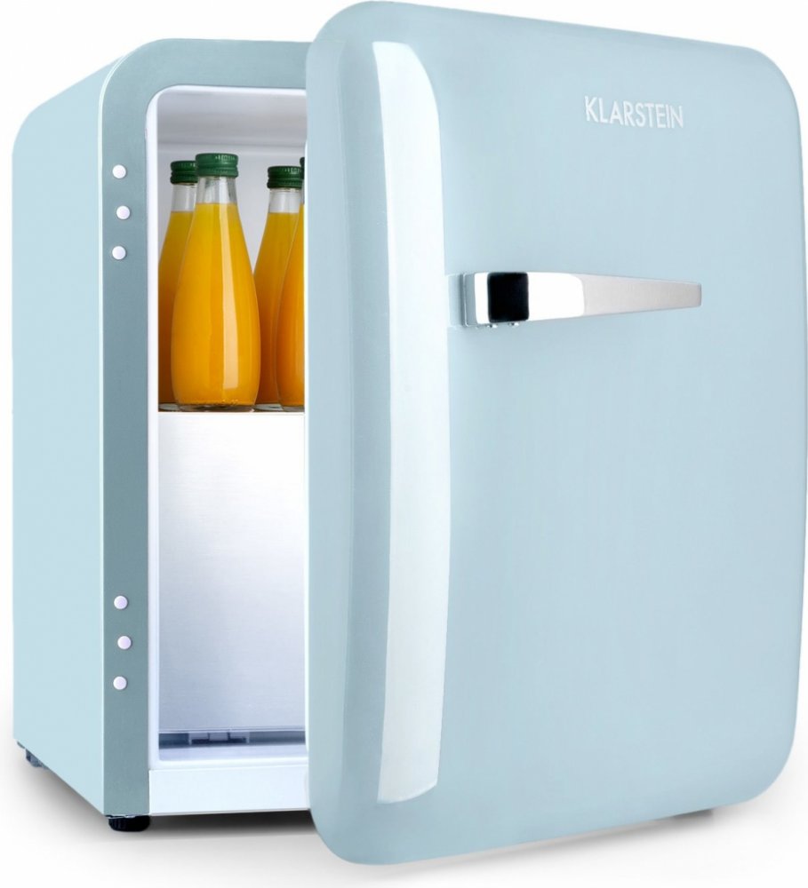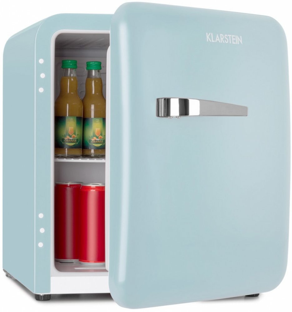 Ledové osvěžení, příjemné na pohled: Extravagantní lednice Klarstein Audrey Mini 2v1 Mini bar v retro designu je vaším nejlepším přítelem v horkých letních dnech. Ať už v kanceláři, ložnici, hotelovém pokoji nebo ve sklepě na večírku - Audrey se postará o osvěžující zmrzlinu nebo ledový nápoj! Minibar lze díky jeho kompaktním rozměrům umístit do jakékoli místnosti a zároveň v něm uchovat dostatek občerstvení a nápojů v chladu. K dispozici je chladicí prostor o objemu 32 litrů s držáky na lahve ve dveřích, které prostor ještě více rozšiřují. Kromě toho můžete v integrovaném mrazicím prostoru o objemu 5 litrů zmrazit drobné pokrmy a zmrzlinu až na -18 °C. Otočný ovladač teploty je neviditelně skrytý v zadní části chladničky, takže neruší jedinečný design vnitřně osvětlené mini chladničky . Americký způsob života: Barevný Retro-Minibar poskytuje malé osvěžení!