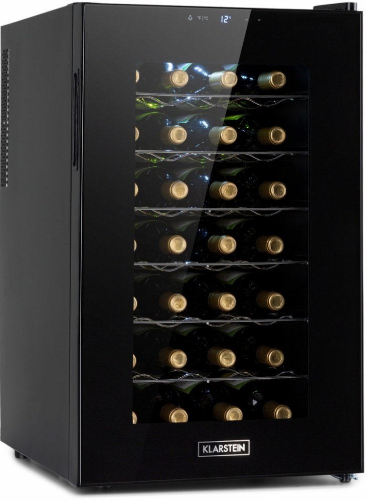 Vynikající vína chutnají mimořádně dobře ze stylové vinotéky Klarstein Barolo 28 Uno, protože jsou vždy vychlazené na tu správnou teplotu pro okamžitý požitek.Ať už jemné červené víno, šumivé bílé nebo svěží růžové: do stylové vinotéky Barolo 28 Uno se vejde v jedné 70 litrové chladicí zóně až do 28 lahví vína. Pomocí dotykového ovládacího panelu a LCD displeje ve vnější straně dveří se dá teplota nastavit individuálně a pohodlně na hodnotu mezi 11 a 18 °C. Zapínatelné jasné bílé LED světlo uvnitř poskytuje potřebný přehled a dokonale uvádí obsah vinotéky na scénu.Dveře s dvojitým sklem nejen dobře vypadají, ale také poskytují kdykoliv rychlý přehled o obsahu chladničky na nápoje Klarstein Barolo 28 Uno. Interiér má stylovou černou barvu, což umocňuje luxusní efekt zařízení. Kombinace skla, ušlechtilé oceli a světla činí z vinotéky dekorativní doplněk každé místnosti. Praktická, s krásným tvarem a výrazná: vinotéka Barolo 28 Uno od společnosti Klarstein.