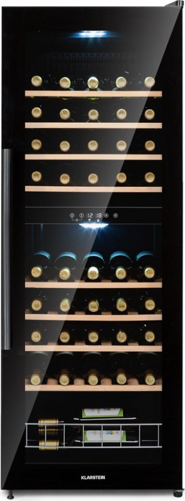 VYNIKAJÍCÍ VINOTÉKA: Tato úzká vinotéka se skleněnými dveřmi pro vystavení vaší sbírky vína má stylové vnitřní osvětlení, UV ochranu a prostor pro šampaňské. Tato lednice na nápoje je vizuálním zvýrazněním každé místnosti. PREZENTUJTE SVOU VÝBORNOU KOLEKCI VÍN: Tato vinotéka pojme až 54 lahví vašich nejlepších vín. Naše vinotéka zajistí tu správnou teplotu, aby se mohla plně rozvinout chuť a vůně vína. SPRÁVNÉ UCHOVÁVÁNÍ VÍNA: Správná teplota je pro víno zásadní. Tuto malou dvouzónovou vinotéku lze nastavit v rozmezí od 5 do 18 °C a správně v ní uchovávat červená, bílá a růžová vína, prosecco a dokonce i pivo. TICHÁ PRO PŘÍJEMNĚJŠÍ PROSTŘEDÍ: Díky tichému motoru a elegantnímu vzhledu je naše vinotéka ideální pro skladování vína nejen doma, ale také v barech a restauracích nebo všude tam, kde se setkávají milovníci vína SNADNÁ OBSLUHA: Dotykový panel umožňuje nastavit teplotu tak, aby byla vaše vína správně vychlazená a připravená k podávání. LCD displej zobrazuje teplotu, takže každé víno lze přesně vychladit na dokonalou teplotu. Top vlastnosti: Kapacita: 148 litrů až pro 54 lahví vína v chladicí zóně Hlučnost: provozní Hlučnost s hodnotou pouhých 41 dB Dvouzónová vinotéka: umožňuje nastavit různé teploty pro různé druhy vína a nápojů LCD displej: s vnitřním zobrazením teploty 8 policových zásuvek: ze dřeva, vyjímatelné Z lásky k vínu: vinotéka Klarstein Barossa 54 Duo zajišťuje nejlepší požitek z vína tím, že poskytuje červené a bílé víno při správné teplotě k pití současně. Skleněné přední dveře s černým rámem umožňují sofistikovanou prezentaci vinných pokladů a přepínatelné vnitřní osvětlení vytváří atmosféru pro uložené lahve. Díky tomu je vinotéka stylovou dekorací nejen v domácnosti, ale také v barech a restauracích. Detaily produktu: Stylová prezentace: skleněné dveře s černým rámem a vnitřním osvětlenímOvládání: dotykový ovládací panelProvozní hlučnost: 42 dB max.Vestavný spotřebič: neKompresní chlazeníObjem (litry): 148Kapacita (lahve 0,75 l): 54Chladicí zóny: 2Teplota: 5 až 18 °C (obě zóny)Ideální teplota okolí: 10 až 32 °CZobrazení teploty: ° Celsia, ° FahrenheitaPočet polic: 8Materiál zásuvkové police: dřevoZávěs dveří: vpravoBílé vnitřní LED světloLCD displej s vnitřním zobrazením teplotyVýškově nastavitelné nožičkyChladivo: R600aSpodní přihrádka pro uložení 6 lahví Obsah zásilky: 1x chladnička na vínoVícejazyčná uživatelská příručka Rozměry: Rozměry: přibližně 48 x 128 x 46 cm (Š x V x H)Vnitřní rozměry horní přihrádky: cca 40,5 x 48 x 35 cm (Š x V x H)Vnitřní rozměry spodní přihrádky: cca 40,5 x 63 x 35 cm (Š x V x H)Délka kabelu: cca 170 cmHmotnost: přibližně 46 kgSpotřeba energie: 100 WRoční spotřeba energie: 147 kWh/rokNapájení: AC 220–240 V, 50 Hz Produktové číslo: 10045822