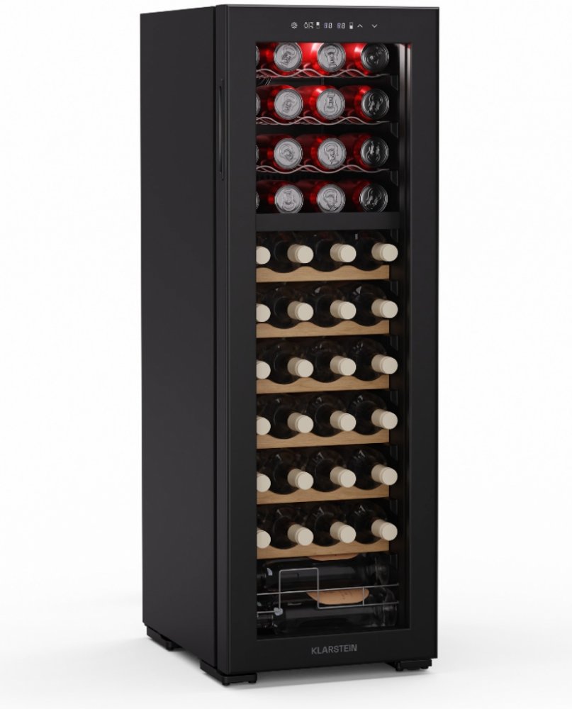 Zažijte optimální skladování vašich vín a nápojů s lednicí na víno a nápoje Klarstein Bovella 44 Duo+. Díky odděleným chladicím zónám můžete skladovat červená, bílá a šumivá vína při ideální teplotě. Vinotéka a chladnička na nápoje Klarstein Bovella 44 Duo+ je všestranným společníkem do každé domácnosti. S kapacitou 121 litrů nabízí prostor až pro 44 lahví a je ideální pro skladování různých vín a dalších nápojů. Dvě chladicí zóny umožňují skladovat různé druhy vína při optimální teplotě od 5 do 18 °C. Elegantní design se stylovým vnitřním LED osvětlením a intuitivním dotykovým ovládacím panelem z ní dělá ozdobu každé kuchyně nebo obývacího pokoje. Díky funkcím ochrany proti vibracím a UV záření zůstanou vaše vína uchována v té nejlepší kvalitě. Vinotéka má tichý provoz s hlučností pouhých 43 dB a lze ji flexibilně umístit jako volně stojící spotřebič. Ujistěte se, že je vinotéka umístěna na rovném povrchu. Police pravidelně čistěte měkkým hadříkem a vyhýbejte se přímému slunečnímu záření.Vyzkoušejte dokonalé podmínky pro skladování vín a nápojů. Objednejte si vinotékou a chladničkou na nápoje Klarstein Bovella 44 Duo+ 2 v 1 ještě dnes!
