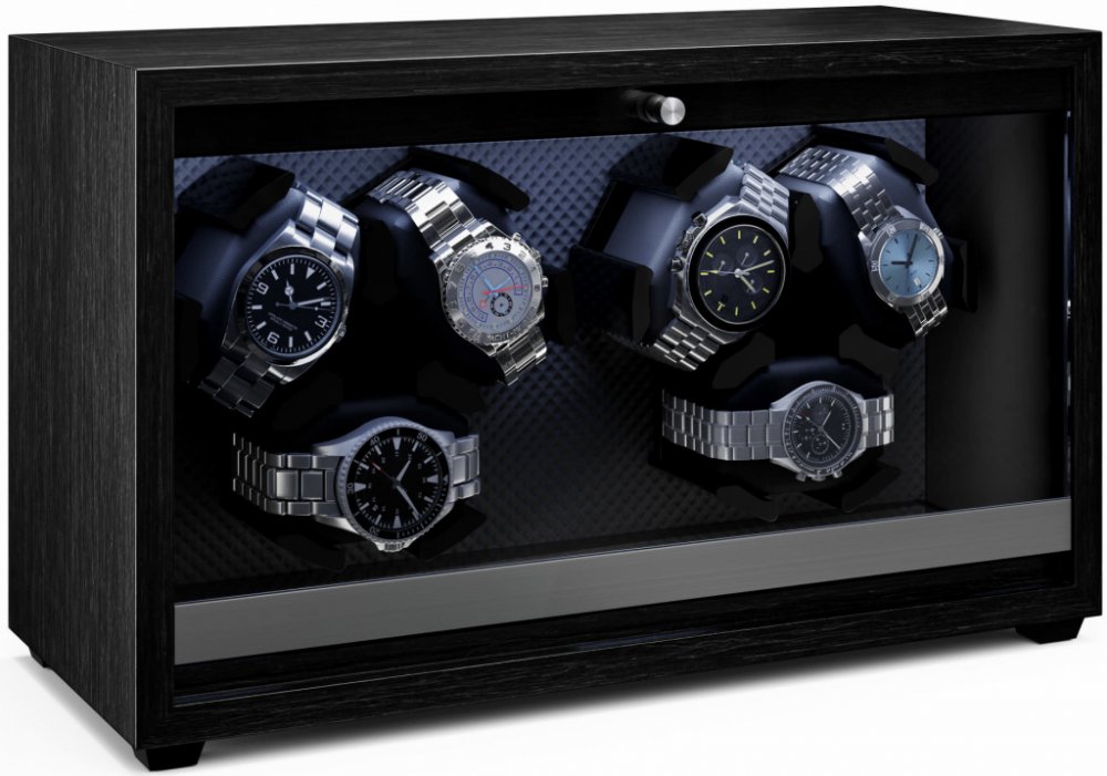 Dokonale tvarované, precizně řemeslné zpracování! S natahovačem hodinek Klarstein Brienz 6 budou vaši elegantní společníci vždy dobře udržováni a připraveni k použití. Automatické hodinky uložené v přístroji se nepřetržitě natahují pomocí 4 režimů otáčení, které simulují pohyb zápěstí. K péči o hodinkový strojek přispívá také rotace, která účinně působí proti tvrdnutí olejového mazání. Natahovač hodinek Brienz 6 má elegantní pouzdro dřevěného vzhledu, které stylově zapadne do atmosféry každé místnosti. Stylové integrované modré LED osvětlení lze nastavit pomocí jednoduchého a intuitivního ovládání. Vpravo se nachází praktický otočný knoflík pro nastavení požadovaného režimu. Díky integrovanému polštářku z paměťové pěny lze do natahovače snadno umístit hodinky s různými velikostmi řemínků i pánské a dámské hodinky. Napájení probíhá pomocí kabelu USB, který lze použít s jakýmkoli napájecím zdrojem USB, a je tedy zcela nezávislý na typu převládající zásuvky.Díky svým skromným rozměrům a hladkému chodu tichého motorku s provozní hlučností nižší než 10 dB lze natahovač hodinek snadno umístit přímo na noční stolek nebo do jiných nehlučných zón. Pečujte o své hodinky a objednejte si natahovač hodinek Klarstein Brienz 6!Upozorňujeme, že vyobrazené hodinky nejsou součástí balení.