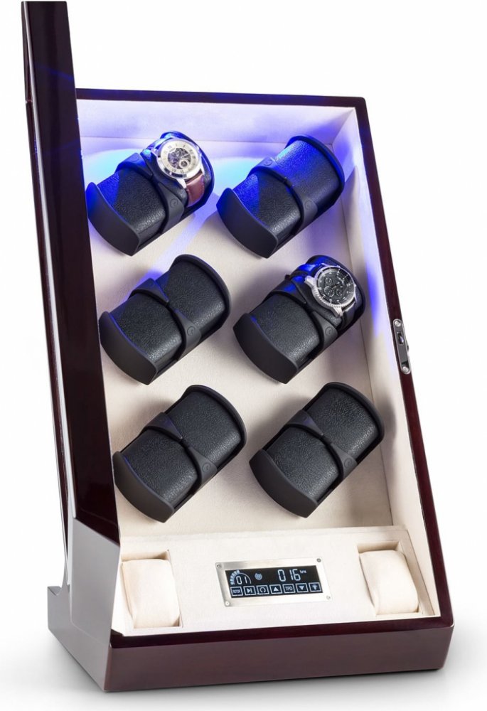 Jde o dokonale tvarované precizní řemeslné zpracování! Natahovač hodinek Klarstein Klingenthal natáhne vaše automatické hodinky, i když je nemáte na ruce. Garonne zaujme také elegantním dřevěným pouzdrem , které stylově zapadne do každé místnosti a perfektně zobrazí až 14 hodinek. Osvětlení interiéru RGB s výběrem barev zajišťuje tu správnou náladu. Tři režimy otáčení a plynulá regulace rychlosti otáčení až do 2200 otáček za den zajišťují správný chod hodinek. Díky tichému motoru neztratíte spánek, ani když navíječ hodinek Klarstein Klingenthal umístíte do ložnice.