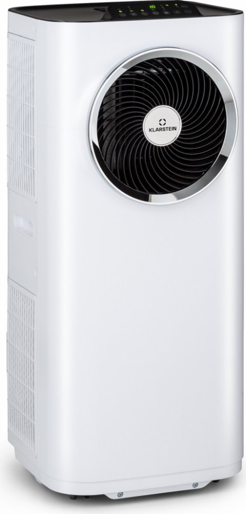 Plný výkon pro chladné teploty: užijte si řadu funkcí mobilního osvěžení s klimatizací Kraftwerk Eco Smart 11 od Klarstein.Mobilní klimatizace Klarstein Kraftwerk Eco Smart 11 zajišťuje dokonalé klima v obytných nebo pracovních místnostech. Její výkonný chladicí kompresor o kapacitě 11 500 BTU nebo 3,3 kW ve třídě energetické účinnosti A+ je ideální pro místnosti o velikosti od 35 do 59 m². Kraftwerk jednoznačně vyniká účinností zařízení 3 v 1, které jako klimatizace, ventilátor a odvlhčovač vzduchu ochladí interiér na příjemnou teplotu 18 až 32 °C v horkých dnech. Integrovaný ventilátor spolehlivě rozvádí ochlazený vzduch po celé místnosti pomocí 3 stupňů výkonu, zatímco funkce odvlhčování odfiltruje ze vzduchu až 33,5 l vlhkosti za jednu hodinu. S pracovní hladinou hluku pouhých 50 dB na nejnižší úrovni je Kraftwerk ideální pro použití v místnostech s nízkými požadavky na hluk.Díky aplikaci Klarstein a připojení WLAN lze zařízení Kraftwerk Eco Smart 11 snadno ovládat pomocí chytrého telefonu, zatímco ovládací panel na horní straně umožňuje snadné manuální ovládání. Nebo se pohodlně usaďte a použijte dodané dálkové ovládání. Díky samočisticímu filtru z oxidu titaničitého s UV zářením pro čištění vzduchu, neutralizaci zápachu a dezinfekci je vzduch v místnosti nejen příjemně teplý, ale také nádherně čistý. Pro rychlou instalaci se klimatizace Klarstein Kraftwerk Eco Smart 11 dodává také se sadou těsnění pro výklopná okna. Hadice pro vypouštění vzduchu, kterou lze prodloužit až na 1,5 m, a hladce se pohybující podlahová kolečka usnadňují výběr místa a přemístění klimatizace .S klimatizací Kraftwerk Eco Smart 11 od Klarstein můžete mít i v horkých dnech vždy chladnou hlavu.
