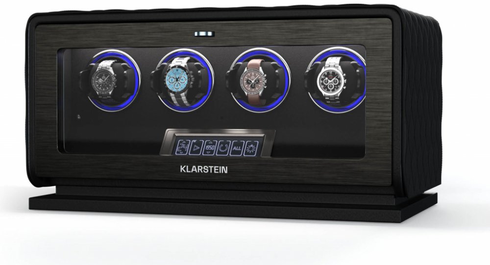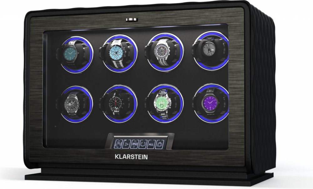 Natahovač hodinek Klarstein LuminousTime nabízí luxusní a tiché řešení, které zajistí, že vaše automatické hodinky budou vždy připraveny k použití.Natahovač hodinek LuminousTime od společnosti Klarstein zaujme elegantním designem z veganské kůže a tvrzeného skla v kombinaci s ozdobami z nerezové oceli. Tichý japonský motor zajišťuje bezhlučný provoz, ideální do ložnic a kanceláří. Díky flexibilním podložkám se přizpůsobí většině hodinek a ovládá se pomocí dotykového LCD panelu nebo dálkového ovládání. Díky 20 různým nastavením TPD a třem směrům otáčení můžete zajistit dokonalou péči o své mechanické hodinky. Integrované osvětlení RGB a bílé LED diody také stylově prezentují vaše hodinky.Klarstein LuminousTime by se měl spouštět v pravidelných cyklech. Trpělivě počkejte, až se natahovač hodinek po několika minutách zastaví, protože se spouští automaticky každou hodinu.Zažijte dokonalou péči o své hodinky a pořiďte si natahovač hodinek Klarstein LuminousTime již nyní!