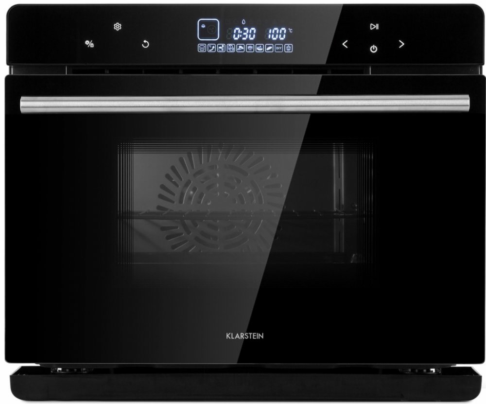 Top vlastnosti: Objem trouby: 24 l Počet funkcí: až 9 programů na pečení Vaření v páře: trouba s velkou nádrží na vodu o objemu 1,4 litru a technologií UltraSteam Technology pro vaření v páře Všestranná: trouba s velkou nádrží na vodu o objemu 1,4 litru a technologií UltraSteam Technology pro vaření v páře Horní a spodní ohřev: technologie ohřevu 360 stupňů degree heating technology s maximální vnitřní teplotou 230 °C Parní trouba Klarstein MasterFresh je výkonné všestranné zařízení, které kombinuje funkce vaření v páře, pečení, opékání a sušení v jednom multifunkčním zařízení.Díky technologii UltraSteam Technology mohou uvařit masové a zeleninová jídla zcela dokonale, přičemž si zachovají své přírodní vitamíny a minerály. Pro tento účel má parní trouba velkou nádrž na vodu o objemu 1,4 litru a pracuje s parním výkonem 1100 W. Zařízení je samozřejmě možné používat i jako normální troubu s výkonem 1900 W: s maximální vnitřní teplotou 230 ° C, s horním nebo dolním ohřevem a také s možností nastavit teplotu na stupeň přesně. Technologie vytápění 360 degree heating technology zajišťuje rovnoměrné rozložení tepla uvnitř trouby o objemu 24 litrů.Naprogramované menu na vaření v páře, opékání, pečení a sušení usnadňují vaření s parní troubou. Devět různých programů přizpůsobených různým potravinám také zjednodušuje přípravu jídla. Všechna nastavení lze pohodlně provádět na přehledném ovládacím panelu SenseControl.Součástí dodávky je kvalitní plech na pečení a mřížka: zábava při vaření s parní troubou MasterFresh od společnosti Klarstein může ihned začít! Detaily produktu: Výkon: 1900–2200 Wobjem varné nádoby: 24 litrůmaximální objem nádržky na vodu: 1,4 litrutřída energetické účinnosti Anapájení: 230–240 V / 50/60 Hznapájení přímo do elektrické zásuvkyVšestranná: trouba s velkou nádrží na vodu o objemu 1,4 litru a technologií UltraSteam Technology pro vaření v pářeHorní a spodní ohřev: technologie ohřevu 360 stupňů degree heating technology s maximální vnitřní teplotou 230 °CPohodlné ovládání: ovládací panel SenseControl a programovatelný časovač až na 12 hodinVelmi prostorná: s kapacitou 24 litrůPřipravené programy:volitelná pro vaření v páře, pečení, zapékání a sušeníNeuvěřitelně všestranná: 9 různých programů přizpůsobených různým surovinám Obsah zásilky: 1 x parní trouba1 x pečící plech1 x roštněmecký manuál (další jazyky: angličtina, francouzština, španělština, italština) Rozměry: rozměry bez držadla: cca 52,5 x 44 x 40 cm (Š x V x H)rozměry s držadlem: cca 52,5 x 44 x 44,5 cm (Š x V x H)rozměry vnitřního prostoru: cca 38,5 x 25,5 x 24 cm (Š x V x H))hmotnost: cca 19,5 kgsíťový kabel: cca 100 cm Produktové číslo: 10033284