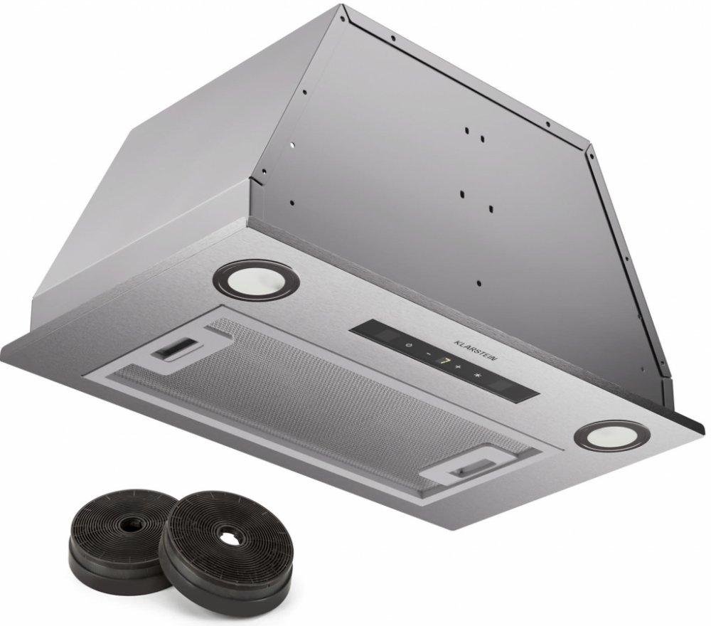 Nejlepší vzduch v kuchyni: Digestoř Klarstein Paolo se nemusí skrývat, ale rád to pro Vaši kuchyň udělá a bez okrajů zmizí mezi kuchyňskými skříňkami. Odtud při vaření účinně odstraňuje páru a výpary. Odsavač par Klarstein Paolo se postará s výkonem 200 W v režimu odsávání vzduchu o čistý vzduch v malých až velkých kuchyních. Tři úrovně výkonu umožňují odsávání až 600 m³ vzduchu za hodinu a cíleně přizpůsobují zabudovaný kryt digestoře výparům z vaření. Speciálním prvkem našeho jen 52 cm širokého a 29 cm hlubokého zařízení Paolos je jeho schopnost nenápadně se začlenit do kuchyňské linky. Na rozdíl od většiny vestavěných digestoří se bez okrajů ztratí mezi kuchyňskými skříňkami nad sporákem a projevuje pouze svou elegantní spodní stranou z kartáčované ušlechtilé oceli. Zde se zároveň skrývá nekomplikovaná dotyková ovládací sekce s větráním a ovládá se zde osvětlení. Zapínatelné světlo s 2 x 1,5 W LED světly efektivně osvětlí varnou plochu.Navzdory svému silnému výkonu je vestavěný digestoř Klarstein Paolo téměř neviditelný, aby nic nerušilo dojem Vaší kuchyňské linky. Digestoř lze přestavět pomocí filtru s aktivním uhlím (produkt 10032843) na recirkulační provoz. Upozorňujeme, že je kryt dodáván bez odsávací hadice.