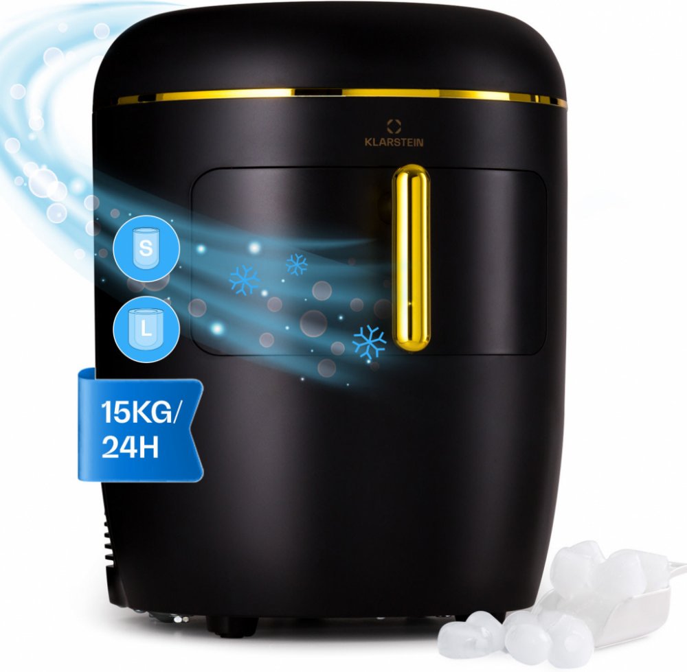 Osvěžující nápoj kdykoli: Klarstein Passau výrobník ledu vám nekomplikovaně zajistí led na whisky, limonádu, koktejly a další nápoje. Výkonný stroj na výrobu kostek ledu Passau vyrobí každý den až 15 kg kostek ledu ve dvou různých velikostech. Díky tomu je ideální pro použití doma i na večírcích nebo zahradních párty. Výrobník kostek ledu se snadno a pohodlně ovládá pomocí intuitivního ovládacího panelu. Pro přípravu velkého množství ledových nápojů je k dispozici objemná nádrž na vodu o objemu 2,3 litru a nádoba na led s kapacitou 700 g. Praktické je zejména to, že nádobu s hotovými kostkami ledu lze snadno vyjmout a že čištění je velmi snadné díky funkci automatického čištění.Čas na ledové nápoje: Klarstein Passau Stroj na výrobu kostek ledu vykouzlí kdykoli čerstvé kostky ledu a díky svému designu zaujme v každé kuchyni nebo baru!