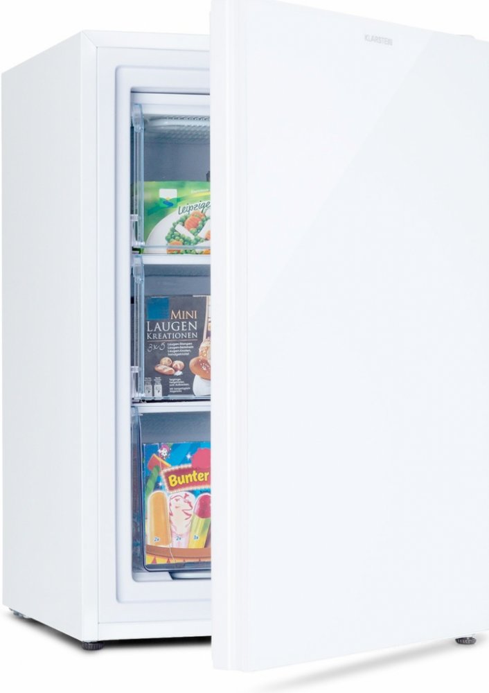 Klarstein Pluto 80L je kompaktní a úsporná mraznička , která spolehlivě zmrazí vaše potraviny na 3 úrovních a s objemem 80 litrů. Pomocí pětistupňového termostatu lze teplotu mrazení snížit až na -18 °C. Její jednoduchý, strohý design skvěle doplňují skleněné dveře.Stylová, spolehlivá a kompaktní: praktická mraznička Pluto 80 l od Klarstein.