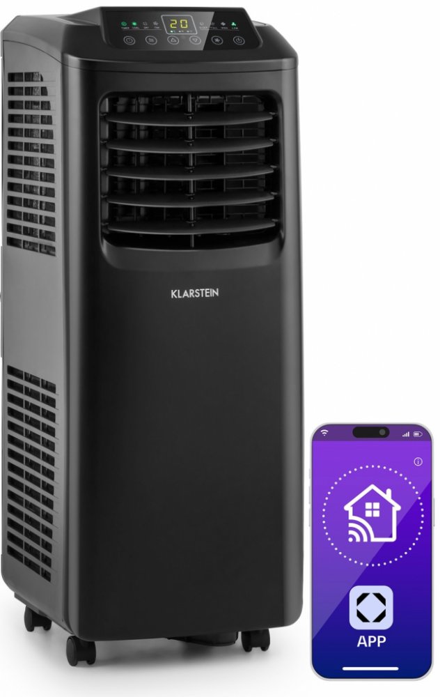 ULTIMÁTNÍ CHLAZENÍ 3 V 1: Naše mobilní klimatizace se postará o horko díky 3 výkonným režimům: klimatizace, odvlhčovač, ventilátor s nočním režimem. Hladce se pohybující podlahová kolečka zajišťují plnou mobilitu. TICHÁ A VÝKONNÁ: Přenosná klimatizace má chladící výkon 9000 BTU / 2,6 kW a ochlazuje místnosti o rozloze 26 až 44 m². Malá klimatizace pracuje mimořádně ticho, takže každý může spát klidně. SNADNÁ INSTALACE: Mobilní klimatizace vám usnadní život, protože má snadno instalovatelnou výfukovou hadici. Praktické okenní těsnění se navíc snadno instaluje a zabraňuje pronikání horkého letního vzduchu do místnosti. UDRŽITELNÁ A ÚSPORNÁ: Domácí klimatizace dopad na životní prostředí a účty za elektřinu. Výkonný kompresor pracuje s chladivem R290, které je šetrné k životnímu prostředí. Časovač zabraňuje celodennímu provozu spotřebiče. APLIKACE A DÁLKOVÉ OVLÁDÁNÍ: Inteligentní aplikace připojí klimatizaci k jakékoli domácnosti a umožní vám úplnou kontrolu prostřednictvím smartphonu. Pomocí dálkového ovladače můžete rychle zkontrolovat nebo změnit teplotu a další nastavení. Top vlastnosti: Smart zařízení: Plně kompatibilní a ovladatelné pomocí Amazon Alexa a Google Home Katalogizace produktu podle obrázku s porovnáním výkonu zařízení: Portable AC Mobilní klimatizace s výkonem 9 000 BTU / 2,6 kW pro místnosti 26–44 m² zařízení 3 v 1: klimatizace, odvlhčování a ventilátor Úsporná & ekologická: s třídou energetické účinnosti A Mobilní klimatizace Klarstein Pure Blizzard Smart 9k se postará v horkých letních dnech o čistý a vychlazený vzduch v místnosti a díky ventilátoru a odvlhčovače vzduchu poskytuje vždy příjemné klima. Zařízení zaujme výkonným, ale přitom úsporným kompresorem na chlazení vzduchu. Chladicí výkon 9000 BTU/2,6 kW nebo odpovídající spotřeba energie 1010 W zajišťují zařízení Pure Blizzard Smart 9k třídu energetické účinnosti A a dělají z něj vhodné zařízení pro trvalý provoz do místností s velikostí od 26 do 44 m².Díky aplikaci Klarstein a připojení k síti WLAN je možné zařízení Pure Blizzard Smart 9k pohodlně ovládat pomocí smartphonu. Horní ovládací panel umožňuje zase jednoduché manuální ovládání. Teplotu prostor je možné libovolně zvolit v rozmezí 17-30 °C - podle upřednostnění o něco teplejší nebo chladnější teploty. Kromě chlazení se dá aktivovat ventilátor s dvěma rychlostmi pro optimální distribuci vzduchu v místnosti. Směr proudění se reguluje pomocí horizontálních a vertikálních lamel. Stejně lze zapnout odvlhčovač vzduchu, který rychle odvádí přebytečnou vodu z vlhkého vzduchu v místnosti a shromažďuje ji v integrované nádrži na vodu. Když je plná, odvlhčovač se deaktivuje a výstražná LED dioda upozorní na potřebné vyprázdnění.Funkci časovače klimatizace Klarstein lze použít tak, že se zařízení po stanoveném čase provozu samo vypne nebo zapne po uplynutí nastaveného času. Pure Blizzard Smart 7k můžeš naprogramovat tak, aby si po horkém dni v práci našel svůj byt v dobře temperovaném stavu, aniž si nechal celý den klimatizaci zapnutou. Všechny funkce můžeš pohodlně ovládat i pomocí dodaného dálkového ovladače.Díky pevně namontovaným kolečkům lze klimatizace jednoduše přesouvat, je tedy prostorově velmi variabilně použitelná. Detaily produktu: chladící výkon: 9000 BTU/2,6 kWpříkon: 1010 Wovládání pomocí aplikace prostřednictvím WiFi připojenídoporučená velikost místnosti: 26-44 m²provozní hluk min .: 50 dB.provozní hluk max .: 65 dB.jednoduchý ovládací panel pro nastavení teploty po stupníchnastavitelné otáčky ventilátoru (vysoké nebo nízké)přesné zobrazení teploty24hod. časovač pro automatické zapnutí, resp. vypnutíčasovač nastavitelný po hodináchfunkce automatického vypnutí: plynulé a konstantní regulování teploty pro tichý provozpohotovostní režimzapínač/vypínač přímo na zařízenízobrazení stavu hladiny vodyvelký dosah proudu studeného vzduchumanuálně nastavitelné horizontální a vertikální lamely na směrování foukání vzduchu Obsah zásilky: 1x mobilní klimatizace1x dálkové ovládání1x vzduchová hadice1 x těsnění pro posuvné okno1 x těsnění pro posuvné okno2 x 1,5 V baterie AAAManuál v několika jazycích Rozměry: rozměry zařízení: cca 30 × 76 × 31 cm (Š × V × H)rozměry odpadní hadice: cca 150 x 15 cm (D × Ø)hmotnost zařízení: cca 23 kghmotnost odpadového potrubí: cca 0,5 kgdélka síťového kabelu: cca 200 cm Produktové číslo: 10035808