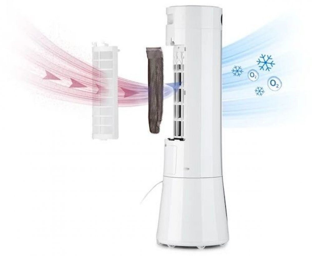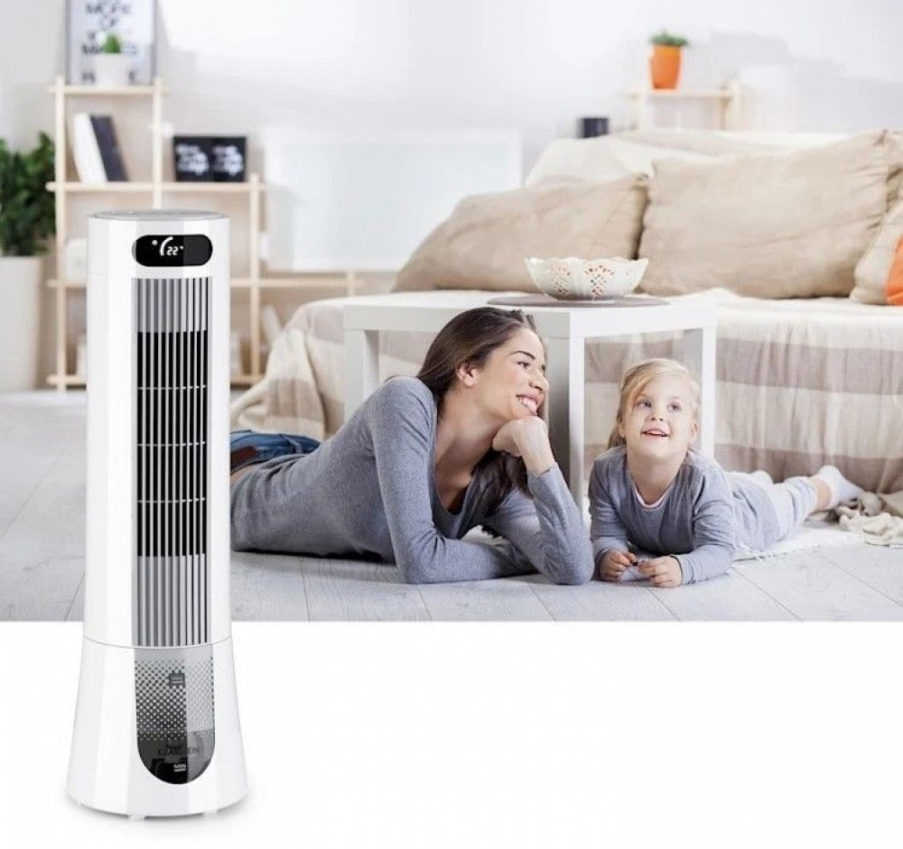 OCHLAZOVAČ VZDUCHU 5 V 1: Tento ochlazovač vzduchu je určen pro domácnosti s omezeným prostorem a poskytuje příjemný chladný vzduch. Mobilní klimatizace obsahuje zvlhčovač vzduchu, který zvyšuje vlhkost a zlepšuje vaši pohodu i v zimě. MOBILNÍ KLIMATIZAČNÍ ZAŘÍZENÍ: 45W ochlazovač vzduchu s vodním chlazením funguje v každé místnosti - hadice pro odvod vzduchu není nutná. Široká oscilace 80° nenechá žádný kout bez chladného vzduchu a poskytuje potřebnou ventilaci pro ochlazení v horkém létě. POHODLNÉ OBSLUHOVÁNÍ: Tento ochlazovač vzduchu můžete ovládat pomocí dálkového ovladače nebo dotykového displeje na jednotce. Praktický 7hodinový časovač a ukazatel hladiny vody dodatečně zvyšují komfort a splňují všechny požadavky. UDRŽITELNĚ A ÚČINNĚ: S naším klimatizačním zařízením bez chladicí kapaliny, které je šetrné k životnímu prostředí, snížíte i své náklady na elektrickou energii. Nádrž o objemu 7 l lze rychle doplnit a 23 h provoz zaručuje ochlazení i během nejžhavější části dne. NIŽŠÍ SPOTŘEBA: Snižte svou uhlíkovou stopu a účty za elektřinu díky našemu pokojovému ochlazovači bez chladiva. Nádrž na vodu lze rychle doplnit a 23 h provoz vás ochladí i během nejžhavější části dne. Top vlastnosti: Kategorizace produktu podle obrázku s porovnáním výkonu zařízení - Air cooler Výkonný, tichý a úsporný ochlazovač vzduchu - průtok vzduchu 100 m³/h, hlučnost pouze 45-59 dB. Zařízení 5 v 1- ochlazovač vzduchu, ventilátor, zvlhčovač, čistička vzduchu a noční režim v jednom. Úsporný a výkonný: s výkonem pouhých 45 W, průtok vzduchu až 100 m³/h Efektivita 4 v 1: ochlazovač vzduchu, ventilátor, zvlhčovač a čistička vzduchu v jednom Čtyřnásobné osvěžení se stylovou větrací věží: ochlazovač vzduchu Klarstein Skyscraper Frost vám jako ventilátor, ochlazovač, čistič vzduchu a zvlhčovač vzduchu bude dodávat chladný vánek.Klarstein Skyscraper Frost: jako ventilátor rozhýbe vzduch se silným průtokem vzduchu 100 m³/h a vytvoří ve třech rychlostech příjemný vánek. Dodatečně můžete zvolit mezi přírodním větrem, nočním a ECO režimem. V kombinaci s funkcí ochlazování vzduchu, se vzduch dodatečně příjemně ochladí, a stará se tak o přesné osvěžení. Na to je voda ze 7litrové nádrže odpařována přes voštinový filtr. Takto je proudícímu vzduchu, přirozeným a šetrným způsobem, odebírána teplota – proud vzduchu se změní na příjemný chladný vánek a perfektně chladí, ať už jej postavíte na psací stůl, ke gauči nebo k posteli. Dva chladicí akumulátory ještě dodatečně snižují teplotu vody a postarají se tak ještě o více osvěžení. Klarstein Skyscraper Frost je proto nejen v létě vítán pomocník: jako zvlhčovač vzduchu v zimě vyzývá na souboj suchý vzduch z topení. Pokud byste chtěli osvěžit více než jen jednu osobu, můžete aktivovat jeho 90 ° oscilační funkci. O ještě kvalitnější vzduch se stará zabudovaný ionizátor, který ze vzduchu efektivně odstraní částečky prachu a zápachy. Díky skrytým posuvným kolečkům můžete ochlazovač Klarstein Skyscraper Frost kamkoliv přesouvat a ihned použít. Zařízení se ovládá přes dotykový panel na horní straně zařízení nebo zcela pohodlně pomocí dálkového ovládání. Výkonný a mnohostranný: ochlazovač vzduchu Klarstein Skyscraper Frost je osvěžující odpověď na všechny horké dny v roce. Detaily produktu: Průtok vzduchu: 100 m³/hProvozní vzduch: 45-59 dBVelikost nádrže: 7 litrůPříkon: 45 W3 rychlostní stupně: nízký, střední, vysoký3 provozní režimy: přírodní, noční a ECOPřírodní režim: stoupající a klesající rychlost ventilátoru jako simulace přirozeného větruNoční režim: jako přírodní režim s postupným snižováním maximální rychlosti až do vypnutíČasovač: automatické vypnutí v hodinových krocích až po 7 hodináchIonizace vzduchu pro odstranění prachu a zápachuUkazatel hladiny vodyVčetně chladicích akumulátorů pro zvýšení efektivityPřehledné ovládání a displej na horní straně přístrojeModerní, prostorově úsporný design věžeVypínač na horní straně jednotkyNapájení: 220–240 V | 50/60 HzÚsporný a výkonný: s výkonem pouhých 45 W, průtok vzduchu až 100 m³/hEfektivita 4 v 1: ochlazovač vzduchu, ventilátor, zvlhčovač a čistička vzduchu v jednomSnadné použití: s přehledným LED displejem, dotykovým ovládacím panelem a praktickým dálkovým ovládánímFunkce časovače: automatické vypnutí po 1 až 7 hodináchOsvěžení na dlouhé hodiny:díky 7litrové nádrži na voduMobilní:šest skrytých, pevně namontovaných posuvných koleček pro snadné přemisťování Obsah zásilky: 1x zařízení2x chladIcí akumulátory1x dálkové ovládáníNávod k obsluze ve více jazycích Rozměry: Rozměry zařízení: 25,5 x 81 cm (ØxV)Délka napájecího kabelu: 180 cmHmotnost: cca 5,1 kg Produktové číslo: 10035819