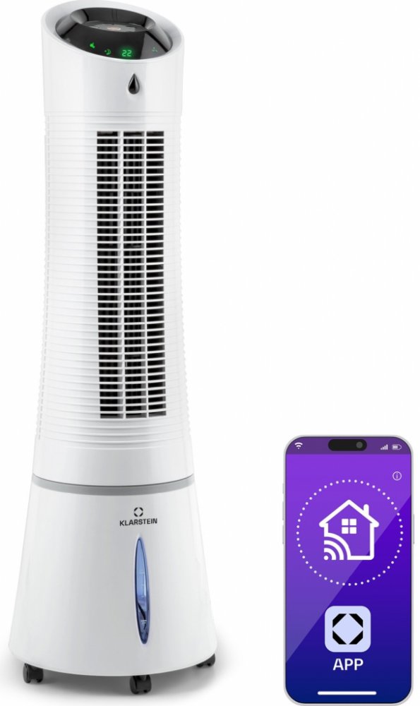 Čtyři způsoby osvěžení ve stylové ventilační věži: Klarstein Skyscraper Ice Smart 4 in 1 Air Cooler vám poskytne chladivý vánek s účinností 4 v 1 jako ventilátor, ochlazovač vzduchu, čistička vzduchu a zvlhčovač.Mimořádně chytrý Skyscraper Ice Smart můžete zaregistrovat v domácí síti WiFi a poté jej pohodlně ovládat odkudkoli prostřednictvím aplikace Klarstein. Ventilátor Klarstein Skyscraper Ice Smart s vysokým průtokem vzduchu 210 m³/h uvádí do pohybu pomalý letní vzduch a vytváří příjemný vánek se třemi různými rychlostmi. V kombinaci s funkcí ochlazovače vzduchu je proud vzduchu příjemně ochlazován odpařováním vody a poskytuje osvěžení s přesností na stupeň. Díky tomu je Klarstein Skyscraper Ice Smart vítaným pomocníkem nejen v létě: jako zvlhčovač vzduchu bojuje v zimě proti suchému ohřátému vzduchu. Vertikální a horizontální oscilace zajišťuje distribuci vzduchu v místnosti. Integrovaný ionizátor účinně odstraňuje ze vzduchu prachové částice a pachy.Výkonný a všestranný: ochlazovač vzduchu Klarstein Skyscraper Ice Smart je osvěžující odpovědí na všechny horké dny v roce.