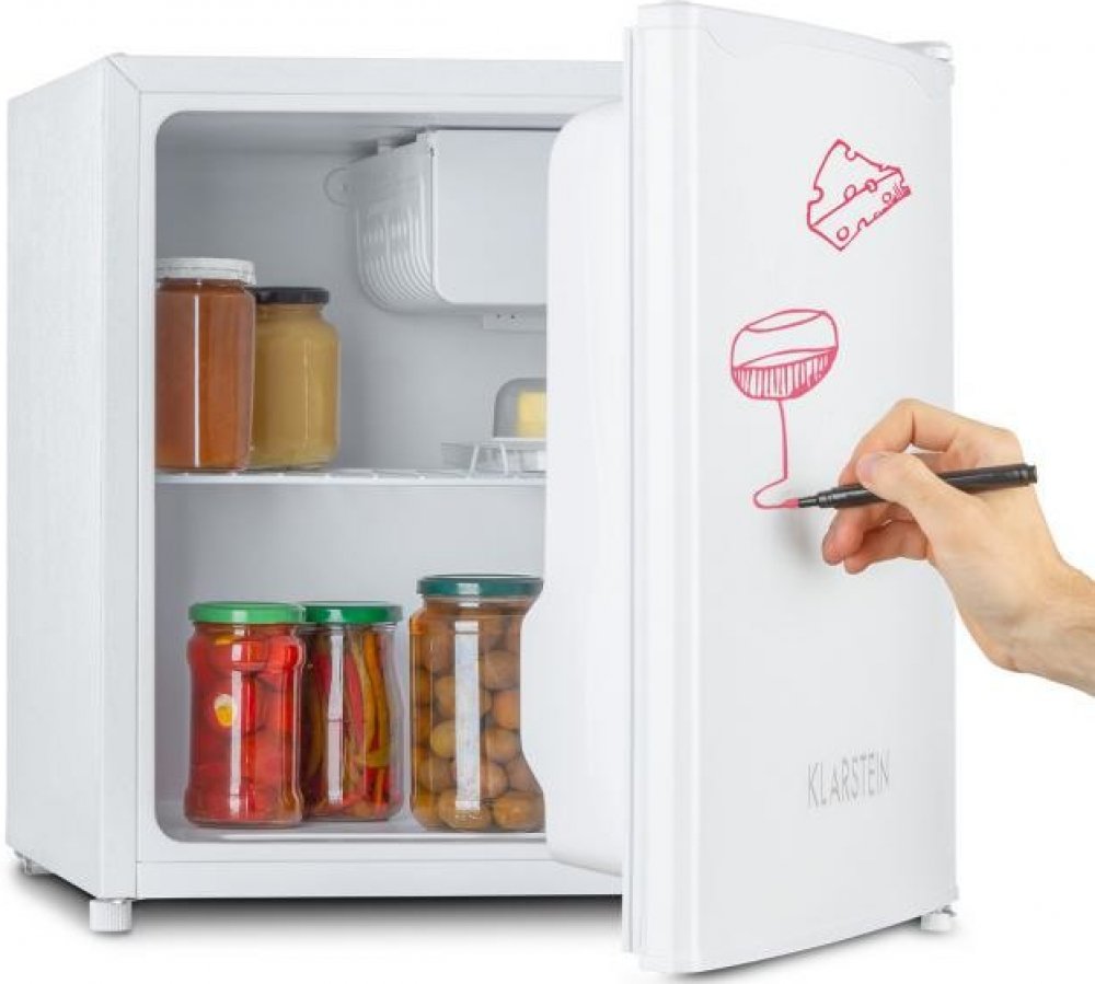 Studená a komunikativní: ekologická lednice Klarstein Spitzbergen Aca je nejen ideálním místem pro uskladnění čerstvých potravin v malých domácnostech, jako jsou internátní pokoje, apartmány jednotlivců nebo zahradní domky, ale je zajímavá i svou odkazovací funkcí v kuchyni – ať už jde o nákupní seznamy, pozvánky nebo zamilované zprávy!Navzdory svým kompaktním rozměrům je lednice Klarstein Spitzbergen Aca poměrně velká z hlediska úložného prostoru. S objemem 46 litrů poskytuje dostatek prostoru pro širokou škálu potravin od jogurtů a sýrů až po maso a zeleninu. Mimořádně praktické: v malém mrazicím boxu můžete dlouhodobě skladovat i mraženou zeleninu nebo chipsy. O dokonalou přehlednost čerstvých potravin se postarají skleněná regálová police a dvě boční přihrádky ve dveřích. Ve dveřích má zařízení Spitzbergen Aca velký držák na nápoje a také malou přihrádku na vajíčka, marmelády, máslo a pod. Lednice Spitzbergen Aca je velmi poutavá a zajímavá, zejména díky předním dveřím ZestfulART Design. Na bílý povrch lze psát speciálními fixy a text lze opět setřít. Součástí je i vhodná značka pro všechna důležitá sdělení. Kuchyně získá zcela nové kouzlo.Díky třídě energetické účinnosti F je lednice ekologická. Pomocí velkého regulátoru uvnitř lze teplotu individuálně nastavit v pěti úrovních.Energeticky úsporný spotřebič je přínosem pro každou malou domácnost: lednice Klarstein Spitzbergen Aca.