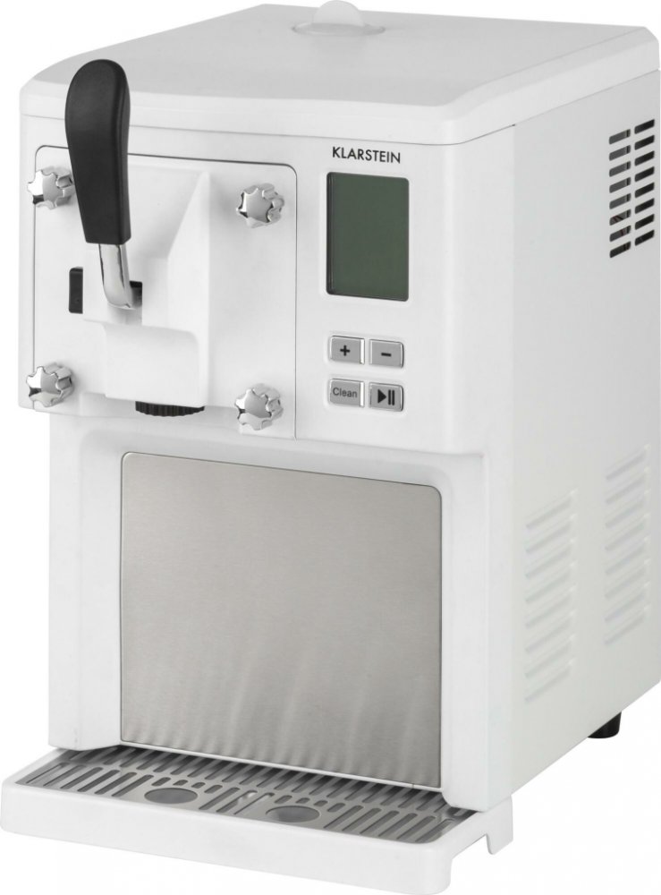 Léto je čas na zmrzlinu! Se zmrzlinovačem Klarstein Sahnehäubchen máte chutné, domácí zmrzlinové speciality hotové okamžitě. Malí i velcí labužníci si přijdou na své. Klarstein Sahnehäubchen je opravdový turbo zmrzlinovač : V průběhu 40 minut v něm ztuhnou vybrané suroviny na chutnou krémovou zmrzlinu. Tím se zajistí perfektní zchlazení během horkých dní - stejně jako dobrý pocit, když víte, že si cestu do zmrzliny najdou jen ty nejlepší přísady. Není vůbec žádný problém přizpůsobit recepturu vlastním preferovaným chutím nebo omezením, co se potravin týče - laktózová intolerance nebo alergie. Přes praktický otvor na vrchní straně je možné pomocí dodávaného trychtýře bezproblémově přidávat další suroviny během probíhající přípravy. Tím se otevírají stále nové možnosti přípravy chutných dobrot. Zmrzlinovač toto všechno zvládne s úsporným příkonem pouze 200 W. Ovládání zmrzlinovače na srozumitelném ovládacím poli je velmi jednoduché. Během provozu se zbývající čas trvání přípravy zobrazuje na přehledném LCD displeji. Po uplynutí doby přípravy se zmrzlinovač automaticky přepne přímo do tříhodinového chladicího režimu, aby se zmrzlá lahůdka rozplynula až na jazyku a nerozpustila se v přístroji. Třešničkou na dortu, v tomto případě na zmrzlině, je u zařízení Klarstein Sahnehäubchen jeho dávkovací systém a automatické čištění. Hotovou zmrzlinu si můžete pomocí páky natočit přímo do zmrzlinového poháru nebo do kornoutu, podobně jako při soft-ice zmrzlinovač. Automatická funkce čištění přivádí toto zařízení do dokonalosti.