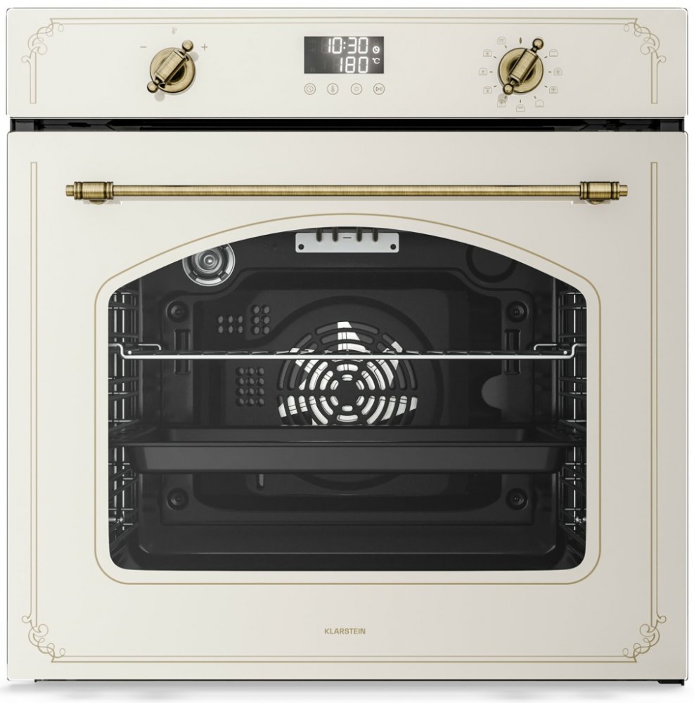 Klarstein Victoria Slim 45 cm – štíhlý pomocník do kuchyně.Moderní kuchyně si zamilují prostorově úsporný design trouby Klarstein Victoria Slim. Bez obětování výkonu a funkčnosti je vybavena 49litrovou smaltovanou komorou s pochromovanými policemi a zásuvkami, které zajišťují dlouhou životnost.Odnímatelná skleněná dvířka a funkce parního čištění usnadňují čištění.Digitální časovač a 10 funkcí včetně horního grilu, turbo grilu a ventilátorového grilu zajišťují přesné vaření.Trouba Klarstein Victoria Slim 45 cm přináší do vaší kuchyně více stylu a pohodlí.