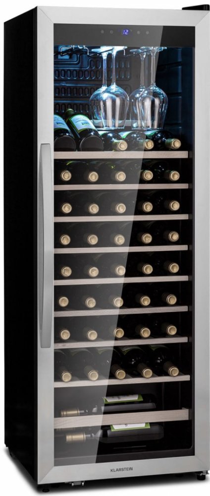 Z lásky k vínu: vinotéka Vinamour 46 Uno od Klarstein zaručuje ten nejlepší požitek. S kapacitou 155 litrů pojme až 46 lahví vína na 10 úrovních a 9 dřevěných policích a ochladí je na požadovanou teplotu od 4 do 18 °C. V horní části najde chladné místo 6 elegantně zavěšených sklenic na víno. Dotykové ovládání je pohodlné a snadné. Díky vnitřnímu osvětlení jsou lahve luxusně prezentovány a prosklen...