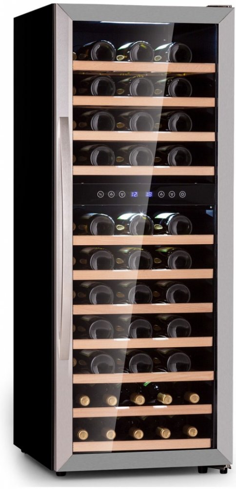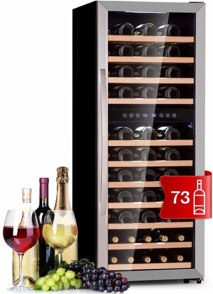 Vinotéka Vinamour 73 Duo od Klarsteinu se postará o ten nejlepší požitek z vína. Díky dvěma odděleným chladícím zónám poskytuje správnou teplotu k pití celkem 73 lahvím červeného nebo bílého vína najednou. Teplotu chlazení od 5 do 18 °C lze nastavit pomocí dotykového ovládacího panelu - ideální pro šumivé šampaňské. Poskytuje luxusní atmosféru a osobitým způsobem prezentuje kvalitní vína. Vytváří luxusní atmosféru a osobitým způsobem prezentuje kvalitní vína - bílé osvětlení se elegantně zaměřuje na uložená vína a panoramatické skleněné dveře poskytují dokonalý výhled na vše.Z lásky k vínu: vinotéka Vinamour 73 Duo od Klarstein nabízí stylový úložný prostor pro víno, sekt a další nápoje.