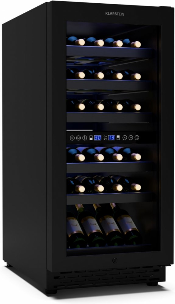 Vinotéka Klarstein Vinovilla 30 Duo nabízí exkluzivní způsob uskladnění až pro 32 lahví vína v optimálních podmínkách. Díky stylovému matně černému designu a černým dřevěným policím se bez problémů začlení do každé moderní kuchyně, ať už jako vestavný spotřebič nebo spotřebič pod skříňku. Díky přesnému teplotnímu rozsahu 5 až 18 °C zajišťuje Klarstein Vinovilla dokonalou teplotu pití pro vaše vína, zatímco tichý provoz zajišťuje příjemnou atmosféru.Se dvěma chladícími zónami, které umožňují udržovat konstantní teplotu 5 až 13 °C a 13 až 18 °C, nabízí Klarstein Vinovilla 30 Duo ideální prostředí pro skladování vína. Masivní dřevěné police jsou snadno vyjímatelné, takže do nich můžete pohodlně ukládat lahve různých velikostí. Díky intuitivnímu ovládacímu panelu LED můžete snadno a rychle nastavit teplotu. Elegantní matný černý design a minimalistické LED osvětlení dělají z této vinotéky stylový doplněk každé kuchyně. Vinovilla je nejen praktická, ale také vizuálně atraktivní, takže je ideální volbou pro milovníky vína. Dopřejte svým vínům dokonalé skladování a vytvořte stylovou ozdobu své kuchyně - s vinotékou Klarstein Vinovilla 30 Duo!