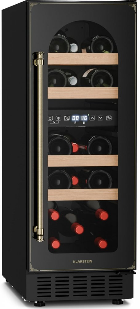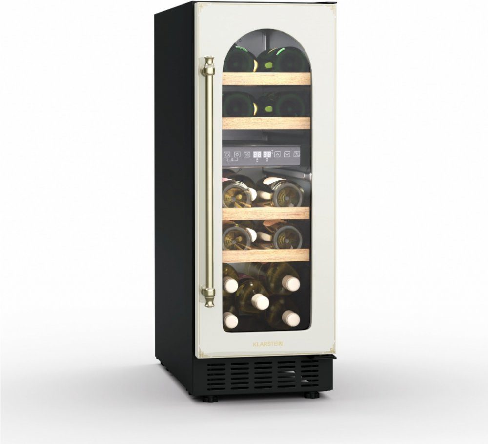 Ušlechtilý design a barevná prezentace: dvouzónová chladnička na víno Vinovilla Victoria 17 od společnosti Klarstein se díky svému Slim designu hodí do každé mezery! Kromě moderních skleněných dveří zaujme chladnička na víno Klarstein Vinovilla Victoria 17 Duo především dvěma chladicími zónami. Takto můžete při různých teplotách skladovat červené a bílé víno. Díky proskleným dveřím a vnitřnímu osvětlení můžete své zásoby vína prezentovat úchvatným způsobem! A díky stylovému vintage designu se skvěle hodí do vaší viktoriánské kuchyně. Důmyslné skladování vína: Dvouzónová vinotéka Vinovilla Victoria 17 od společnosti Klarstein nabízí stylový prostor a zajišťuje ideální teplotu pro pití! Objednejte si vinotéku Klarstein Vinovilla Victoria 17 Duo ještě dnes a mějte po ruce dokonale temperované víno pro každou příležitost.