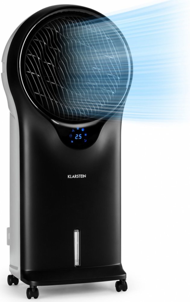 Čerstvá mořská Bríza. Klarstein Whirlwind 3 v 1 klimatické zařízení se postará o čistý, ochlazený vzduch během horkých letních dnů. S ventilátorem, vzduchovým chladičem a zvlhčovačem vzduchu se z přehřátých kancelářských a obytných prostor stanou příjemné oázy."Zachovat si chladnou hlavu - ochlazení stisknutím tlačítka".Prostřednictvím ovládacího panelu s podporou LED displeje včetně šesti funkčních tlačítek si můžete kombinaci ochlazování nastavit dle libosti. Ovládání je logické a rychlé díky srozumitelnému zobrazení symbolů. Tři výkonové stupně a možnost alternativního zapnutí automatické 360 ° rotace destiček umožňují precizní přizpůsobení se na aktuální povětrnostní podmínky a velikost místnosti. Whirlwind dodatečně disponuje třemi různými provozními režimy, jako např. natural mode, při kterém rychlost proudění vzduchu klesá a stoupá podobně jako při přirozeném větru. To znamená vždy čerstvý větřík pro čerstvé myšlenky."Čisté řešení - konečně se opět volně nadechnout".Ke zlepšení účinnosti osvěžení disponuje toto zařízení i zvlhčovačem vzduchu. V 5,5 l nádrži na vodu je nasáván vzduch ochlazován odpařováním a dodatečně zvlhčován. Kromě toho odstraňuje zabudovaným filtrem prach a částečky nečistot ze vzduchu, takže můžete volně dýchat iv těch největších letních vedrech. Praktická funkce časovače přitom umožňuje použití, které šetří Vaši peněženku."Čerstvost všude v místnosti".Díky třem podlahovým kolečkům lze vzduchový chladič snadno přemístit, a tím je prostorově velmi variabilně použitelný. Whirlwind nepřesvědčí jen svým výkonem, ale i opticky se stává přínosem na každé místo. Design konstrukce zanechává elegantní půvab a šikovně zaobluje tak klasické i moderní obytné a pracovní zařízení.Prosím, mějte na vědomí, že nejde o klimatické zařízení v běžném slova smyslu, ale o vzduchový chladič. K chlazení průtokového vzduchu dochází odpařováním vody / ledu z nádrže na vodu o objemu 5,5 litru.Dostupné varianty: černý, bílý (produkt 10029327)