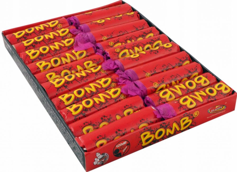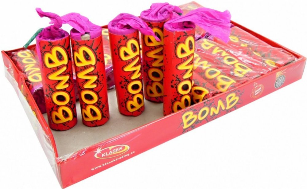 Balení 20ks kvalitní a oblíbených petard Bomb. Silná a bezpečná petarda se zápalnicí, 120dB z 15m. Rozměr 59x17mm.